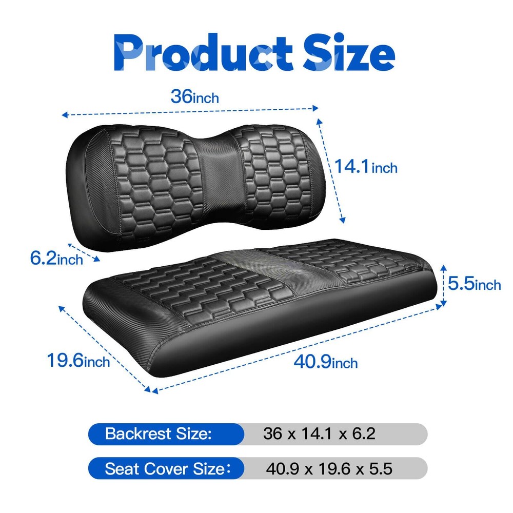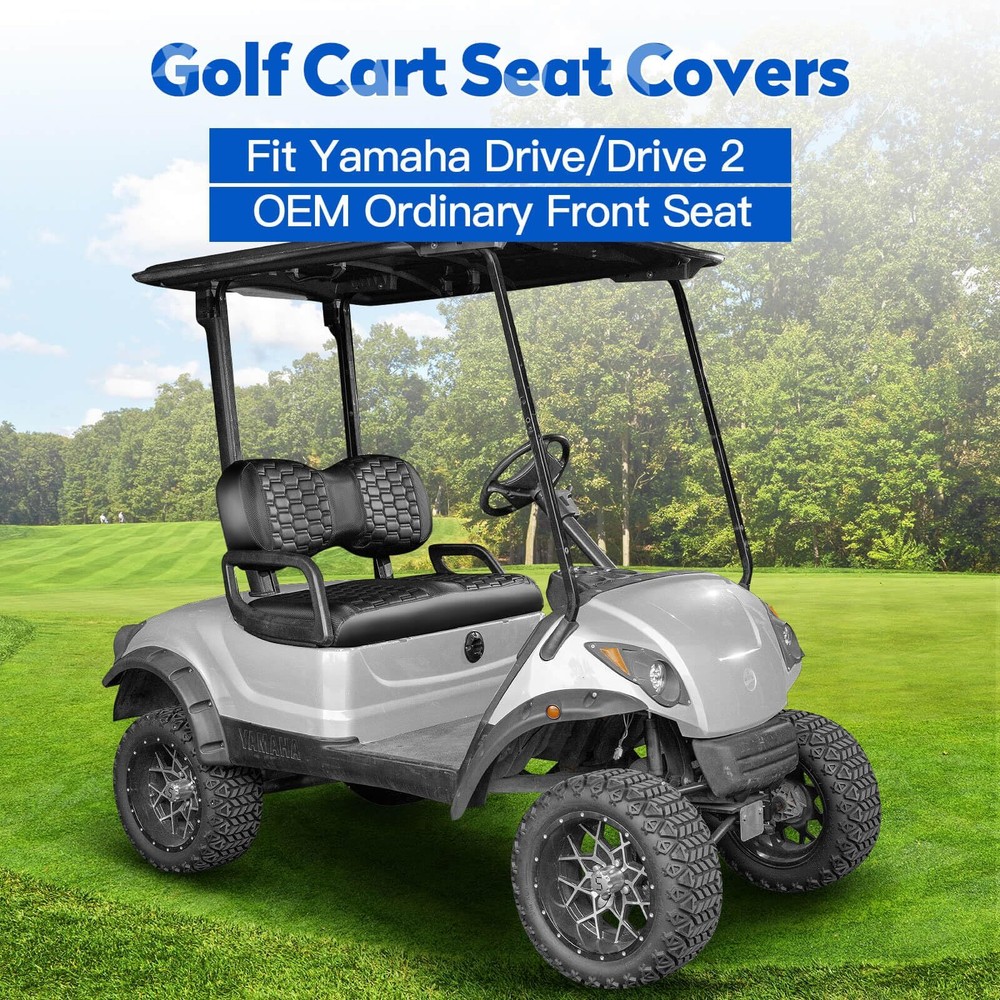 Golf Cart Seat Covers, Fit for YAMAHA/G29/Drive2 Ordinary Front Seat Cushion, Yamaha Accessories Vinyl Seat Covers, No Nails Required(Carbon Fibre Black and Black) Applicable Models: YD type diamond seat covers kit (Hexagon Carbon Fiber Black) is only suitable for Yamaha drive G29 2007-2016 and 2017+ drive 2 natural gas and electric original ordinary golf carts, not for luxurious thick cushions, please measure your seat size before buying. Seat cushion size: L40.9 x W19.6 x H5.5 in, Backrest size: L36 x W14.1 x H6.2 in. This front seat cover can perfectly match the OEM front seat. High Quality Material: Golf Cart Front Seat Covers is made of high quality durable vinyl material and breathable foam padding, which is wear-resistant, fade-resistant, crack-resistant, soft, and not easy to fatigue when sitting for a long time, which can effectively prolong the service life of the golf cart seat cover. Breathable foam filler can provide a more comfortable sitting position and good breathability, so you can take a long time to ride the golf cart more experience Easy Installation: Easy to install with straps. No need gun nails and without removing the old vinyl seat cover. Just cover the old seat with this Hexagon Carbon Fiber seat covers. In addition, the adjustable shoulder straps and retractable buckles design help you to install and remove seat covers in minutes.Very stable, not easy shift Hexagonal carbon fiber seat cover design: The front seat cover of the golf cart uses hexagonal carbon fiber design (Black), which adds a touch of luxury and elegance to your golf cart, and will make people shine on the course. Upgrade your golf cart's old seat New Look: This Golf Cart Seat Cover gives your golf cart a new look, covering your old seat cover and providing full protection for your seats. It gives you a new and luxurious look and feel. All of these golf cart seat covers provide excellent comfort and style Shipping We offer FREE shipping on all orders! We ship within Three business days of payment, usually sooner. We use a selection of shipping services such as UPS, FedEx, USPS etc. We only ship to the lower 48 states, no APO/FPO addresses or PO Boxes allowed. Local pickups and combined shipping options are not provided at this time. Return You can return a product for up to 30 days from the date you purchased it. Any product you return must be in the same condition you received it and in the original packaging. Please keep the receipt. Payment We accept payment by any of the following methods: PayPal Please pay as soon as possible after winning an auction, as that will allow us to post your item to you sooner! Feedback Customer satisfaction is very important to us. If you have any problem with your order, please contact us and we will do our best to make you satisfied. Contact Us If you have any queries, please contact us via ebay. We usually respond within 24 hours on weekdays. Please visit our eBay store to check out other items for sale! Thank you for shopping at our store.