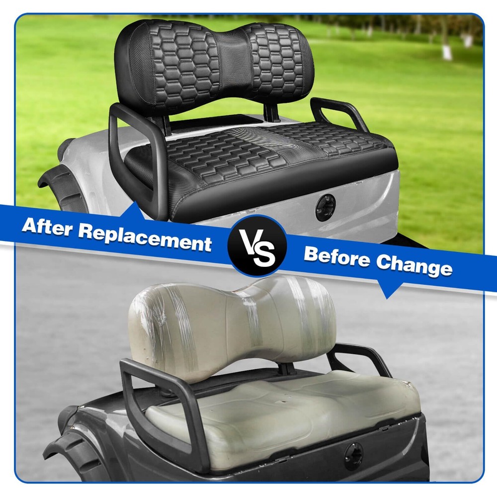 These seat covers are a game-changer for my Yamaha G29! The fit is perfect, and the carbon fiber black looks sleek and stylish. Installation was a breeze—no nails needed, just a snug fit. The vinyl material feels durable and easy to clean, great for keeping my golf cart looking fresh. Highly recommend for anyone wanting an upgrade!