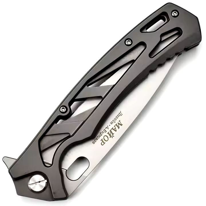 NOKS Major Folding Knife D2 Steel Blade Skeletonized - EDC - SHIPS FROM TEXAS NOKS folding knife featuring a tough D2 steel blade and a lightweight skeletonized handle. This knife delivers tactical functionality and makes an ideal everyday carry (EDC) tool. The blade is marked with “МАЙОР” and the HOKC/NOKS logo (pterodactyl), showcasing its high-quality craftsmanship. Whether you’re in the field or using it for daily tasks, this drop point blade is ready for action. Features: • Blade Material: D2 Steel • Handle: Skeletonized design for reduced weight and enhanced grip • Blade Type: Drop Point • Lightweight for easy everyday carry • Tactical and EDC-ready This is a great addition to your collection or everyday kit. Don’t miss out on this reliable, rugged knife. Ships from Texas, USA. Same or next day guaranteed! Remember, stay sharp, stay ready, shoot straight!