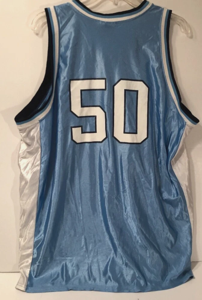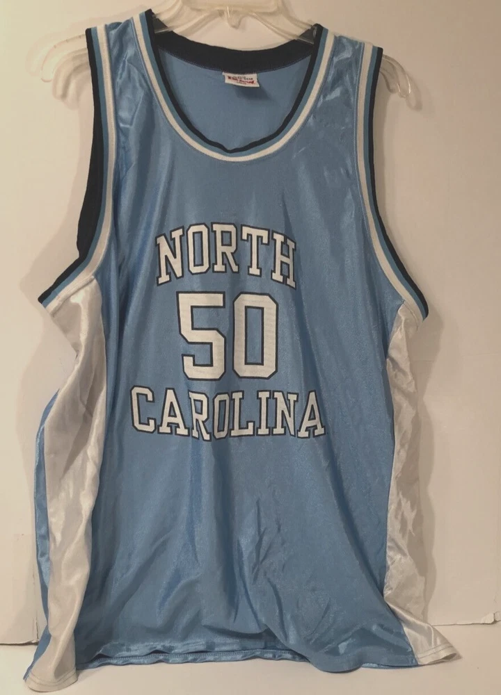 NCAA Official Licensed Products Izaw North Carolina Tar Heels #50 Vintage Basketball Jersey *100% Polyester *Screen-printed *Color: Blue Size: Adult L Measurements: Armpit to Armpit 23" Back of Neckline to Hemline 31" Shoulder to Shoulder 12" Condition: Pre-owned.