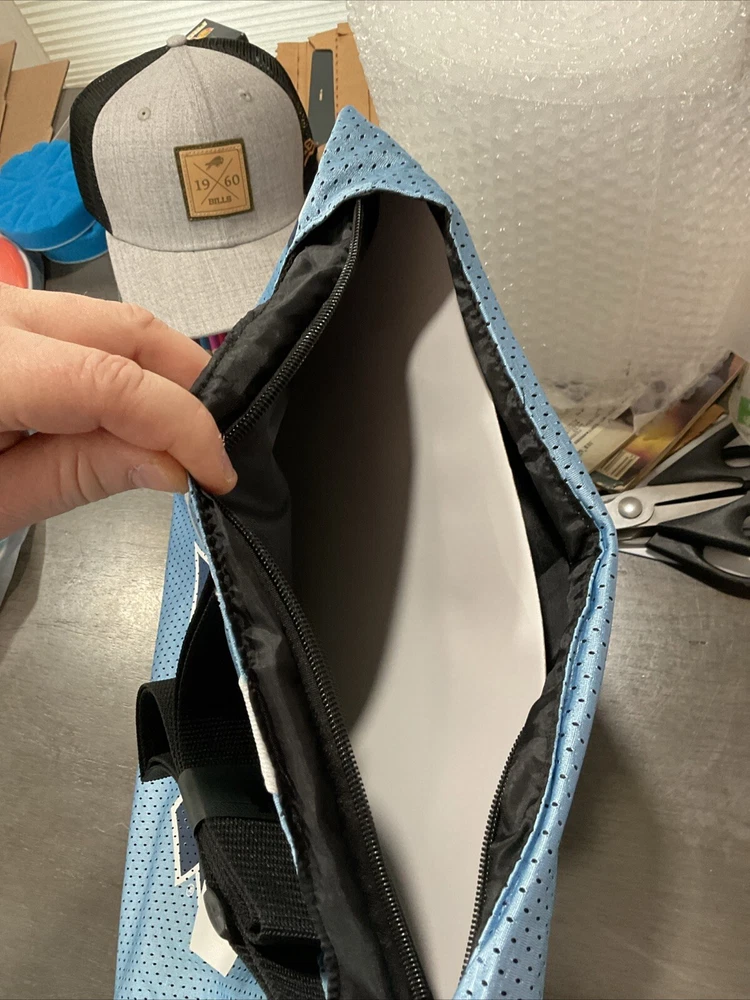 Show off your team spirit with this North Carolina Tar Heels jersey purse! Perfect for football season or just a great way to show your support for the team, this bag is made from high-quality sports jersey material and features the iconic Tar Heels logo. Measuring 12" x 12" x 4", this unisex adult bag is ideal for students, fans, and anyone who wants to show their love for the North Carolina Tar Heels. The blue color and regular season design make this bag a great addition to any collection. Plus, it's perfect for game day or just a day out with friends. Get yours today and show your support for the Tar Heels!