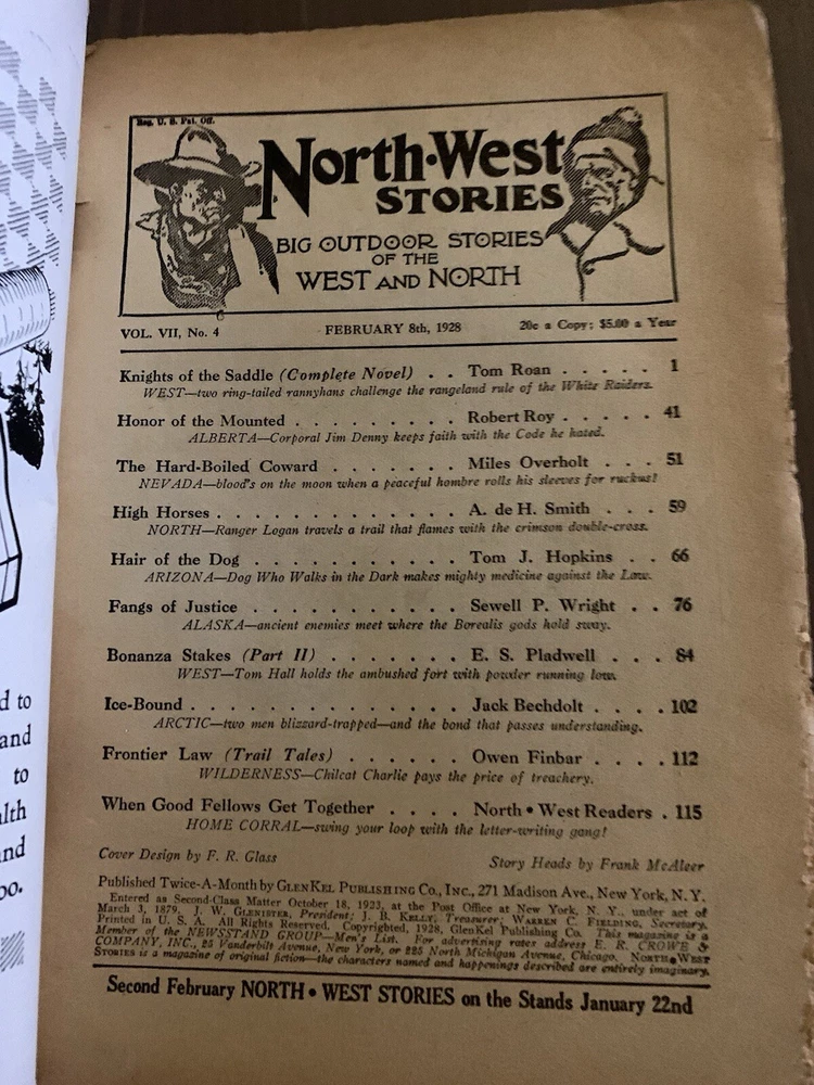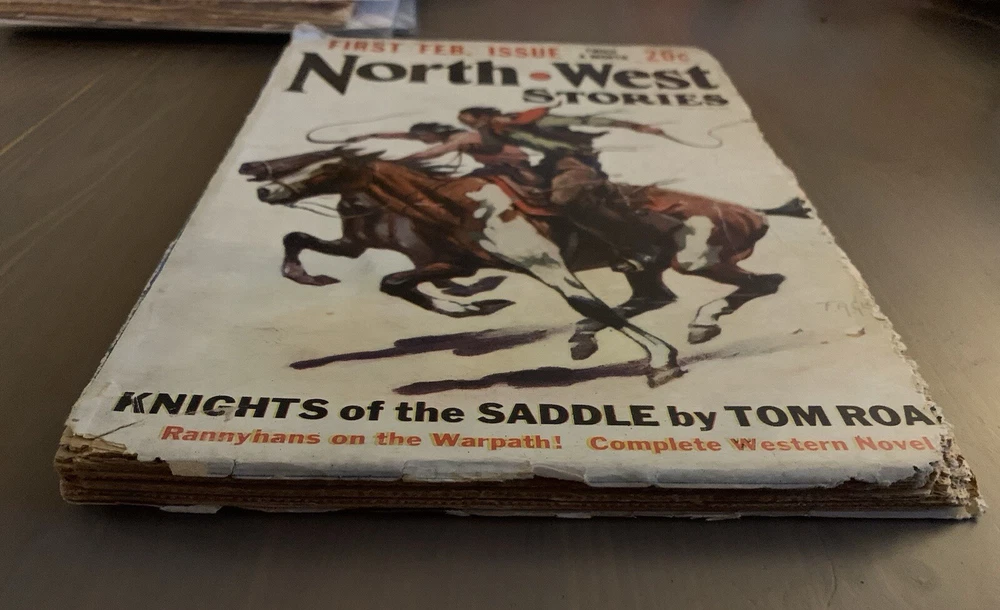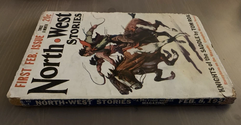 A vintage issue of the pulp magazine North West Stories dated February 8, 1928. Fair condition with considerable flaking especially from the bottom corners. Sound binding. See photographs. Ships in a USPS Priority Mail Padded Flat Rate Envelope. I am generally able to combine shipping. Message me for details.