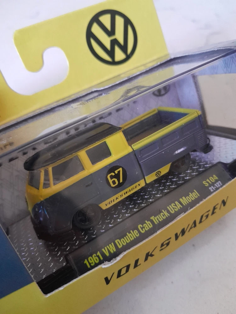 This limited edition 2021 M2 Machines 1961 VW Double Cab Truck USA Model S104 is a must-have for any diecast collector. The attention to detail on this 1:64 scale replica is impressive, with a gray and yellow color scheme that accurately reflects the iconic Volkswagen truck. The truck comes with a protective case and is still in its unopened box, making it an ideal addition to any collection. The truck is recommended for children aged 8 and above, and is part of the Volkswagen series from M2 Machines. This diecast truck is made from high-quality materials and was manufactured in Malaysia. It features a number of aspects, including being autographed, customized, and with a theme of Volkswagen. With its features and aspects, this 2021 M2 Machines VW Double Cab Truck is sure to impress any diecast collector.
