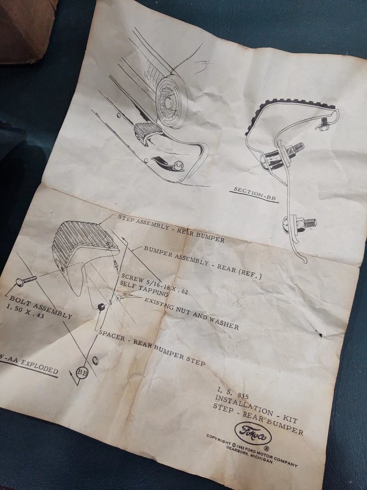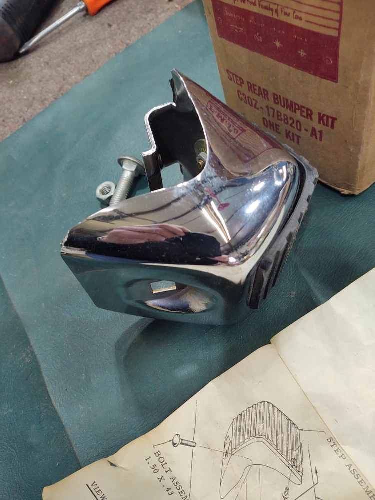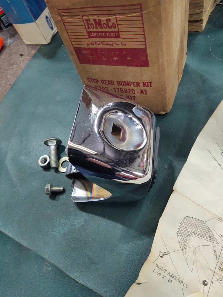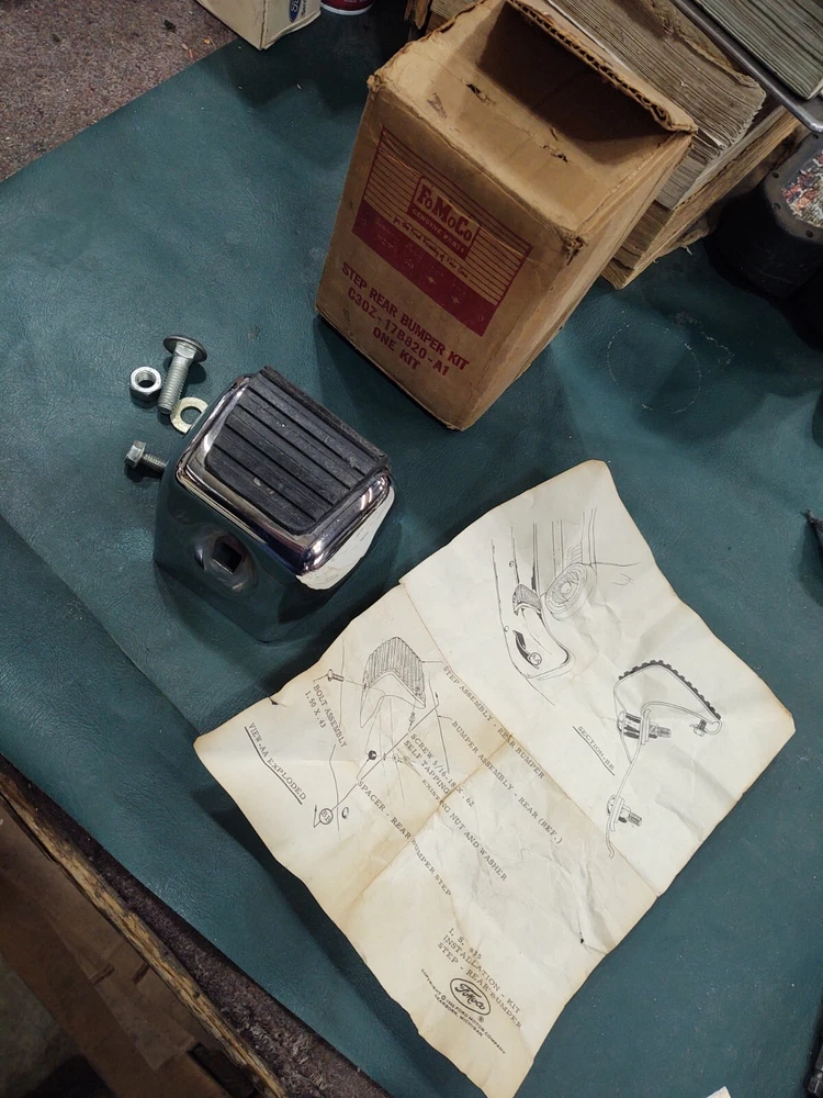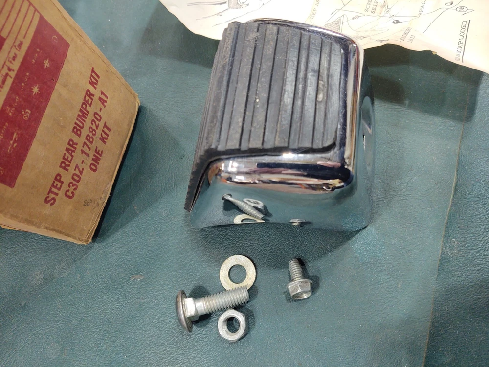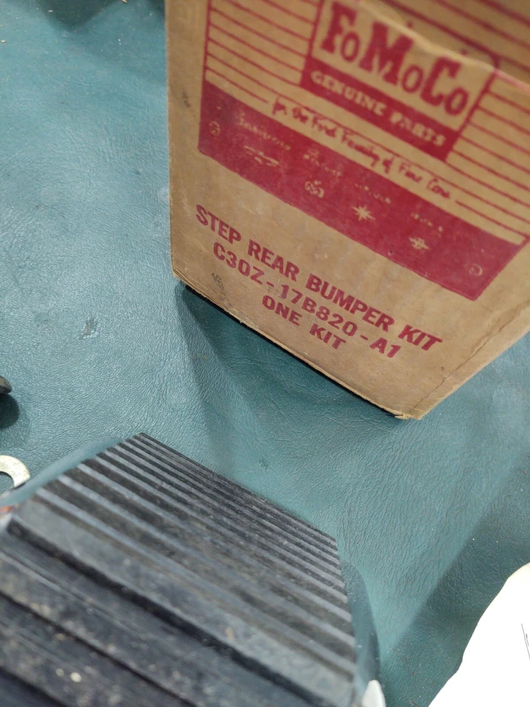 NOS OEM FOMOCO 1963 1964 Ford Fairlane & 1963 Mercury Meteor Station Wagon Accessory Rear Bumper Step Complete with attaching hardware and instructions. PART# C3OZ-17B820-A1 . MY FIT RANCHERO ? Please look at the pictures this is what you will receive. Make sure and do your research at this fits your application. Has been on the shelf of a closed Ford dealership for years very nice.