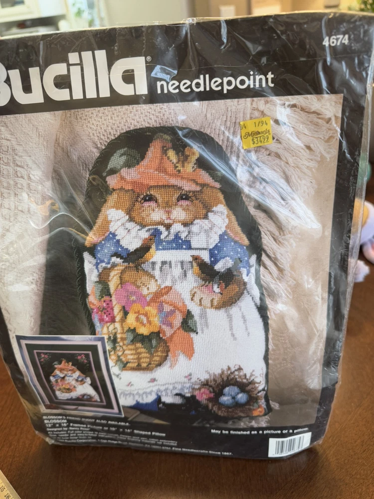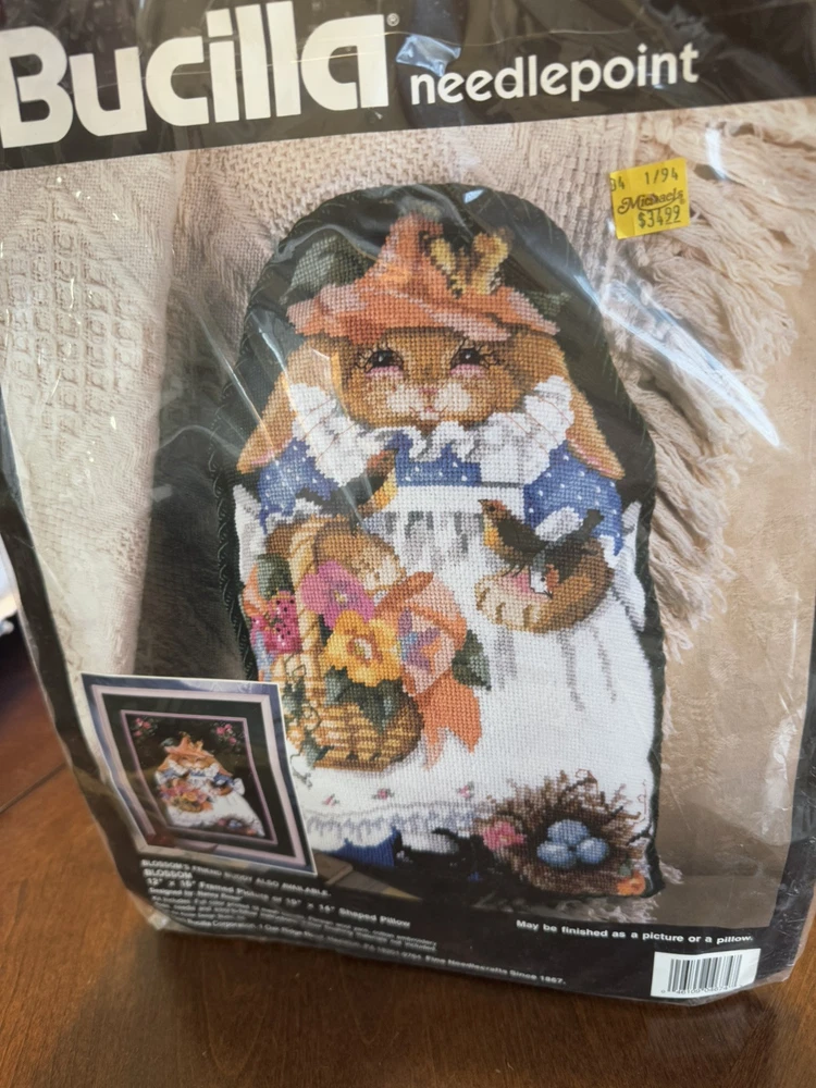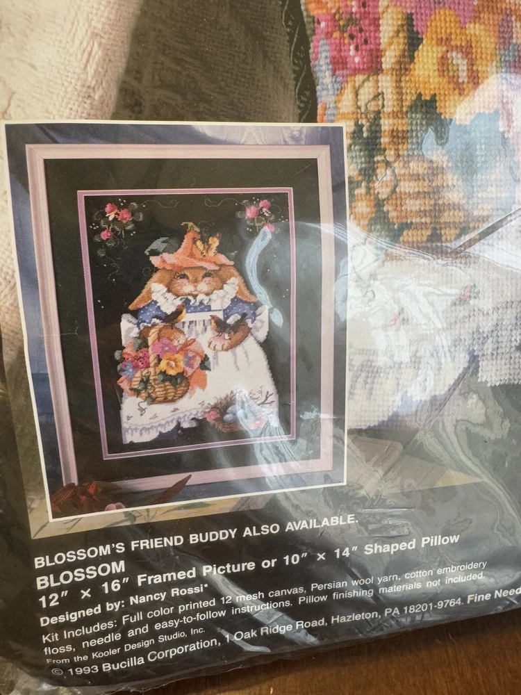 SO CUTE! New in pkg The product is a vintage Bucilla Blossom Bunny Needlepoint Kit in design #4674 by Nancy Rossi. This kit falls under the categories of Needlepoint Kits, Hand Embroidery Kits, and Needlecrafts & Yarn, making it a versatile and creative craft project for enthusiasts. Please see all photos Smoke Free Home Always happy to combine for shipping savings