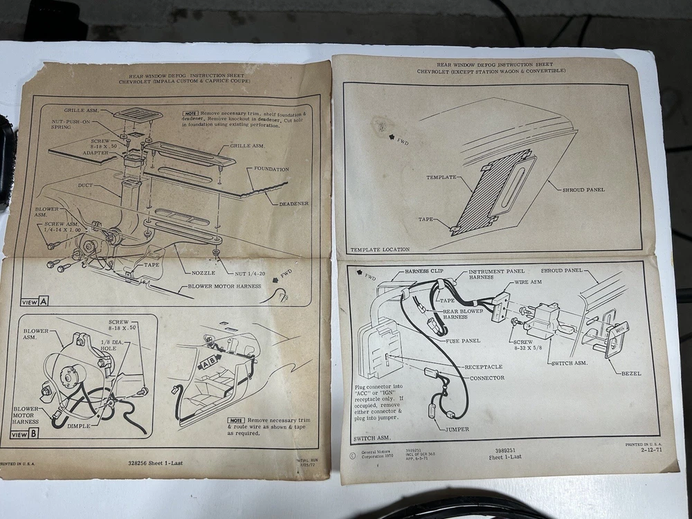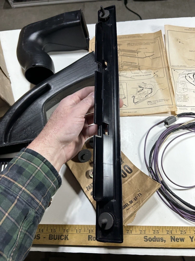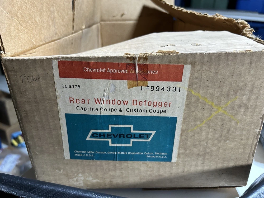 - Original New Old Stock General Motors NOS GM Chevrolet 1971-1973 Chevy Caprice Coupe & Custom Coupe Rear Window Defogger Unit (incomplete) - Missing blower motor assembly, switch, switch bezel, and instrument panel harness, as well as a few small screws, nuts, and washers. - Part #994331, Group 9.778 - May fit other makes / models / years as well (some Impala?). - In good shape overall, with some minor shelf / storage wear and the like (imperfections / blemishes / marks / dings / scratches / scuffs / etc). The foam seal on the duct has deteriorated and needs to be replaced. Includes all related items as shown. Box is in poor condition. See pictures. - It is the buyer’s responsibility to do the research and be sure this is the exact item for buyer’s application. - This item has been on the shelf for many years. Please note NOS parts can be very old and may have some surface dust, rust, and the like. We try to clean this off for the most part but some may still be on the part(s) when you receive it. Also may have factory imperfections and blemishes, along with various degradations over time (depending on material). We cannot, and do not, guarantee the functionality or application. - Please review all photos carefully (use the zoom feature if needed), as they can best describe the item(s) and ask all questions prior to bidding/purchase. Item(s) sold as is. - Feel free to make me a reasonable offer on my fixed price listings, and I discount shipping on multiple purchases whenever possible. - Thank you for looking and be sure to check out my other listings. - RETURNS: no returns. - FEEDBACK: please leave positive feedback if you’re satisfied with your purchase. Please, please, please contact me to resolve any issues before leaving negative feedback. Once I receive a positive rating from you, I will leave positive feedback. Thank you!