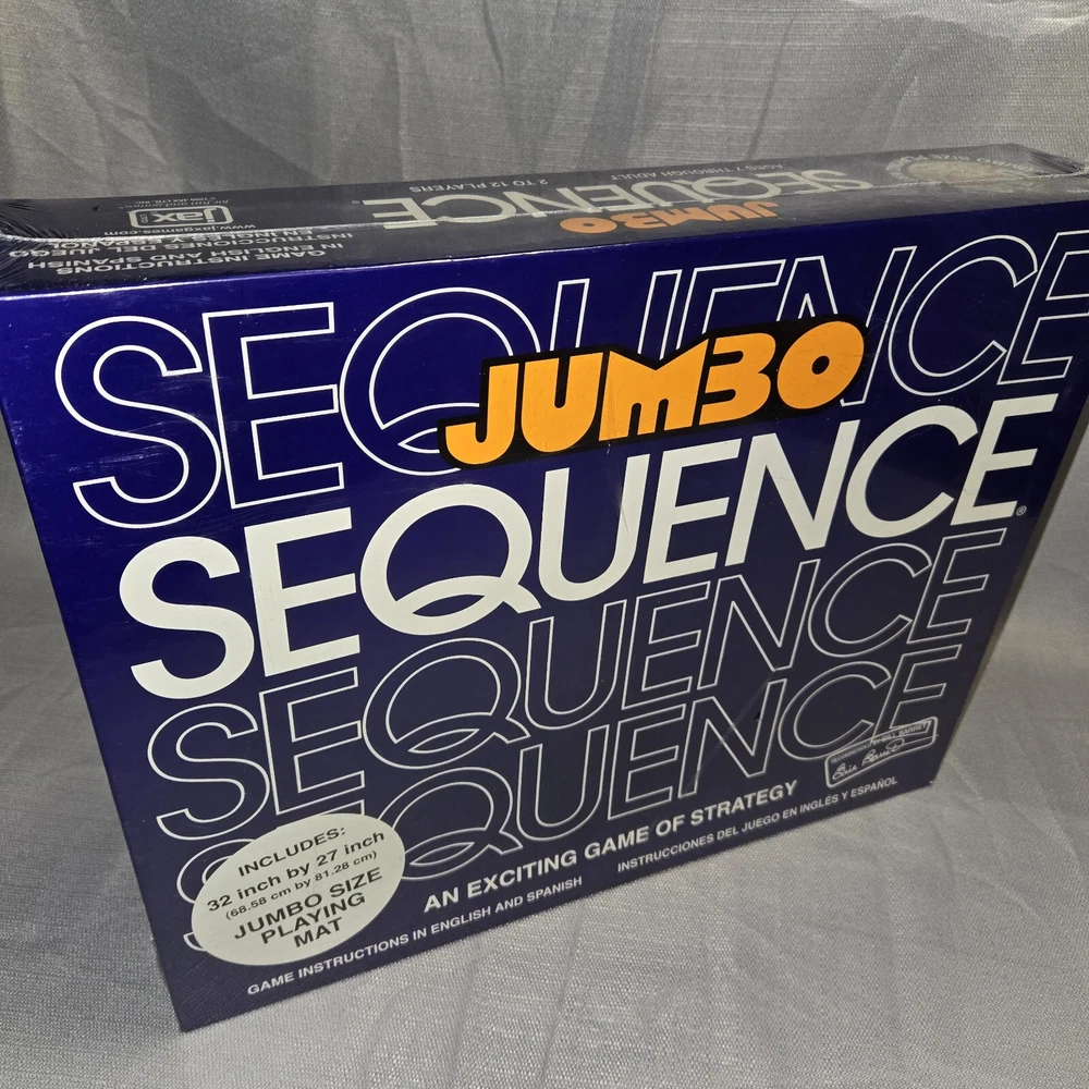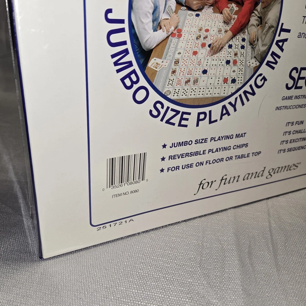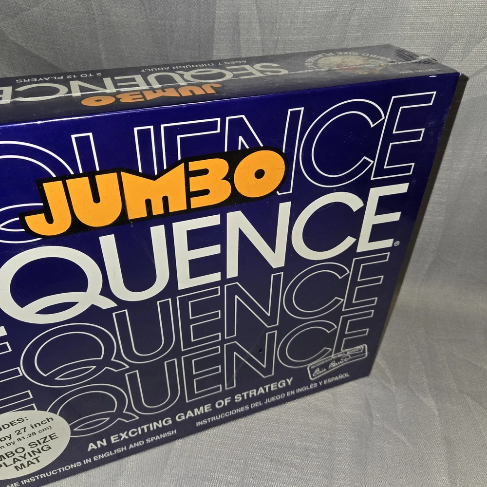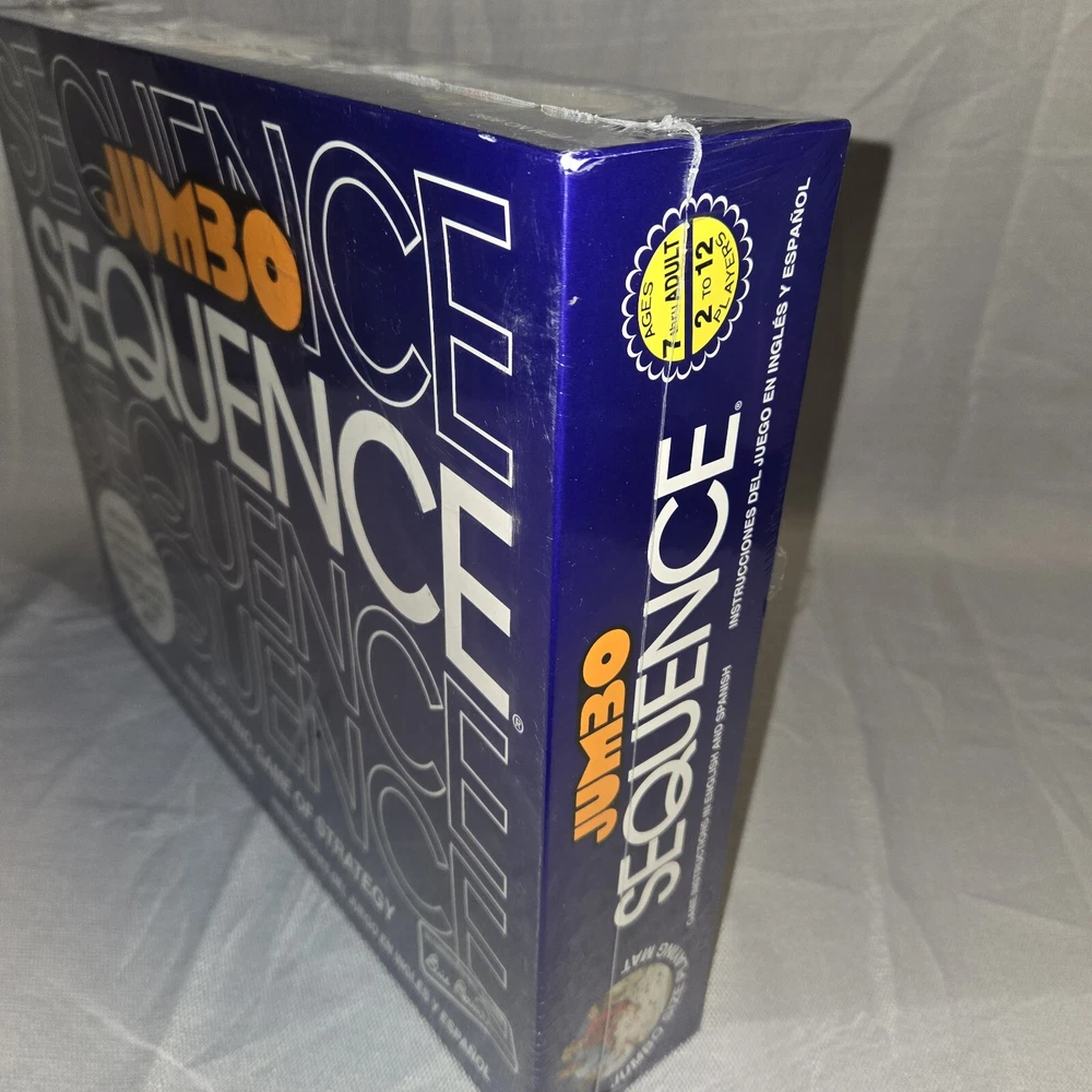 Game Title: Sequence JUMBO Theme: Strategy Year: 1996 UPC: 035261080805 Recommended Age Range: 7+ Brand: Jax gtin13: 035261080805