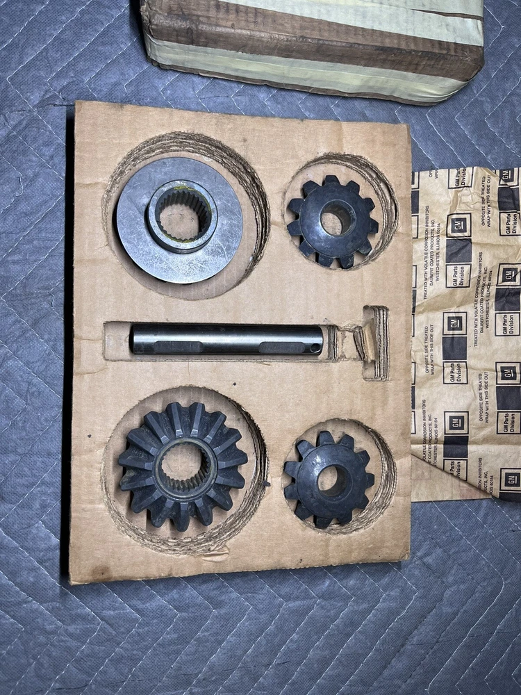 NOS OEM GM 26019852 8.5” 10 Bolt Differential Kit New in box from GM. All items are sold as is as pictured and described. Each is labeled with year and application specifics. Fitment is based on research but may not always be correct, it is up to the purchasers disgression. Keywords: GM Chevy Truck OEM classic car restoration custom rebuild restore oem NOS new in box 8.5 inch 10 bolt differential kit pinion spider gears 26019852