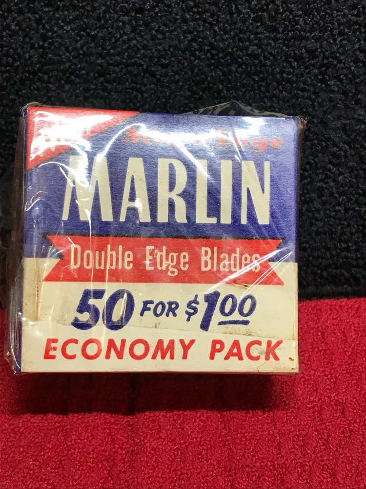 Full sealed box of 50 exactly as you see. Will ship these free if you are paying shipping on another item. *** Note that these are collectible blades that are not necessarily designed for use, but are certainly new old stock. Although the box is fairly pristine, the blades themselves might have discoloration or some corrosion from age once they are opened. Please check out the photos and video as a description and ask any questions before buying. Items will be safely packaged for you and shipped out to you within 2 business days of payment. NOT RETURNABLE if you open the box. Sorry! Any questions? Please ask and we will answer as soon as we can. Thanks for looking!