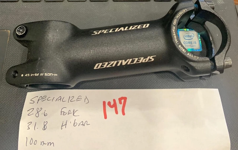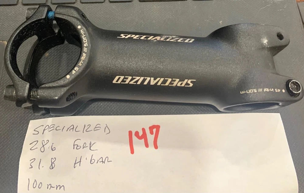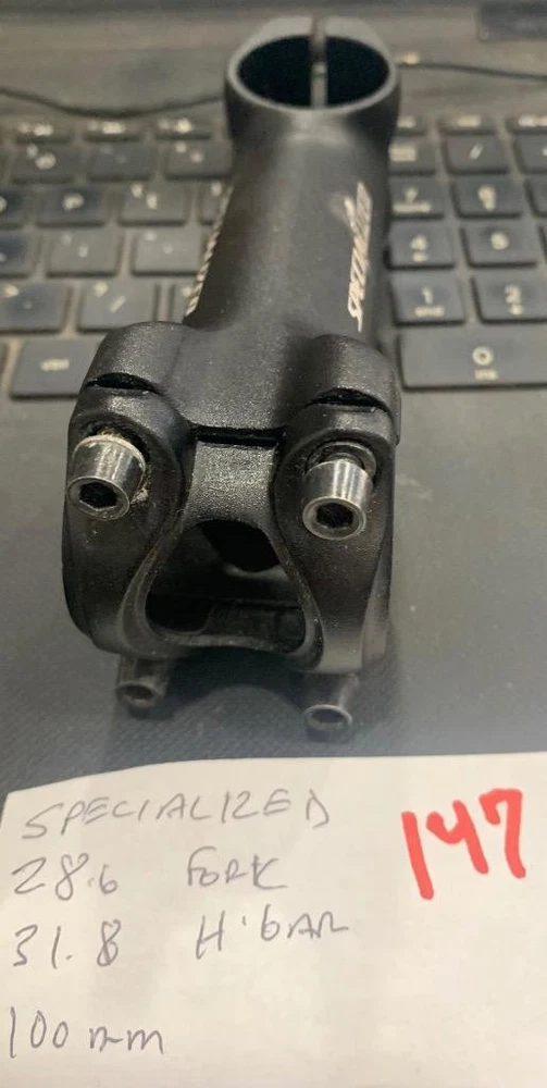 NOS Specialized Mountain Bike Threadless Front Load Stem Gooseneck, 100mm long, alloy with a 28.6 steering tube opening and bar opening of 31.8. NOS Specialized Threadless Alloy Stem 100mm 31.8 Steerer 28.6 #147 NOS Specialized Threadless Alloy Stem 100mm 31.8 Steerer 28.6 #147 Description You are buying a NOS Specialized Mountain Bike Threadless Front Load Stem Gooseneck, 100mm long , alloy with a 28.6 steering tube opening and bar opening of 31.8. Shipping will be $6.95 in the 50 states. I will ship overseas. Payment must be received before 7 days after purchase of item. Please ask all questions before buying. View My Other Items For Sale Add me to your Favorite Sellers Visit My eBay Store For Immediate Purchases And Shipping. Click images to enlarge Pictures sell! Auctiva offers Free Image Hosting and Editing. 300+ Listing Templates! Auctiva gets you noticed! The complete eBay Selling Solution. Track Page Views With Auctiva's Counter