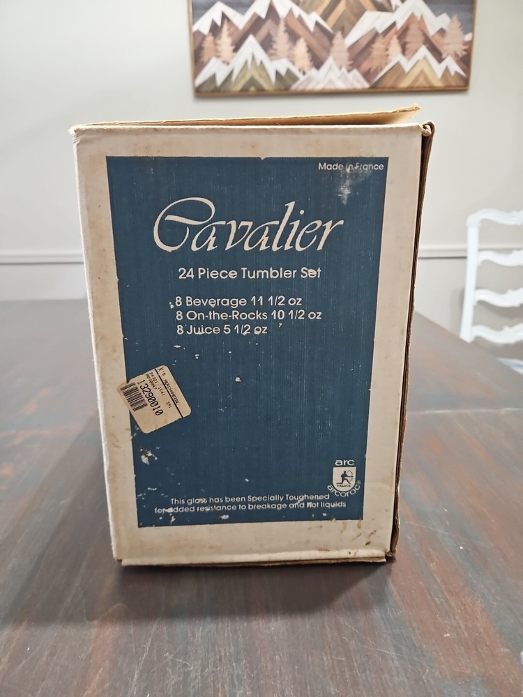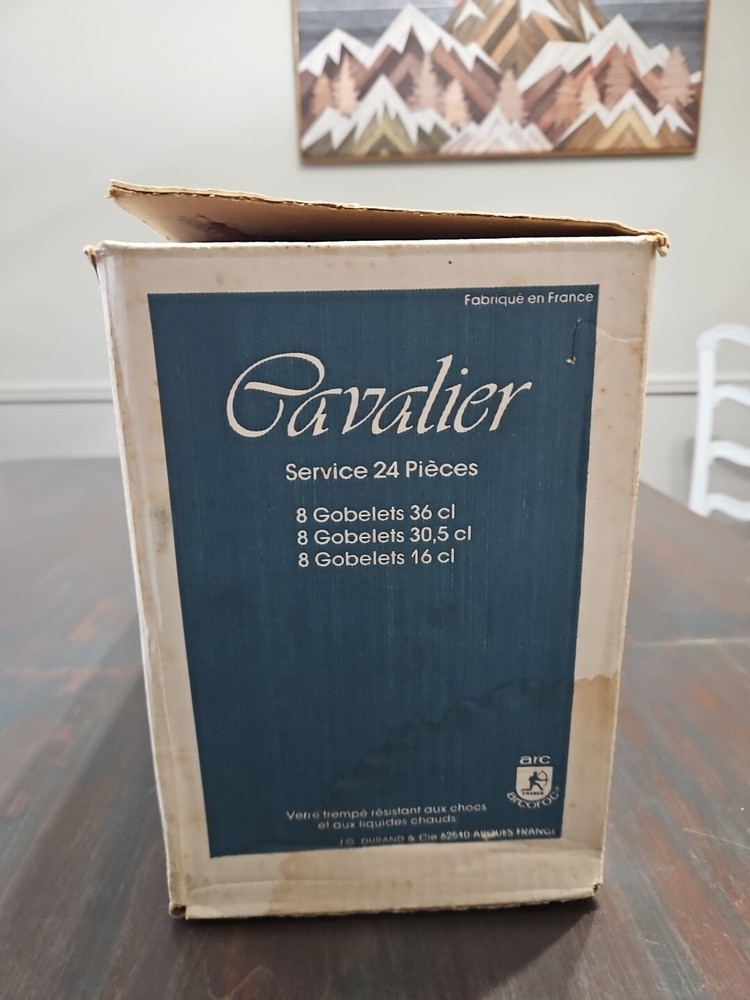 Material: Glass Theme: New Old Stock Service For: 8 gtin13: 026102508473 Type: Tumbler, Rocks & Juice Glasses Capacity: 11½ 10½ & 5½ ounces MPN: EB 203/83 Model: Cavalier Country/Region of Manufacture: France Color: Clear Number of Items in Set: 24 UPC: 026102508473 Glassware Type: Glassware Set Pattern: Cavalier Set Includes: Tumbler Item Weight: over 13 pounds Brand: Arcoroc J.G. Durand