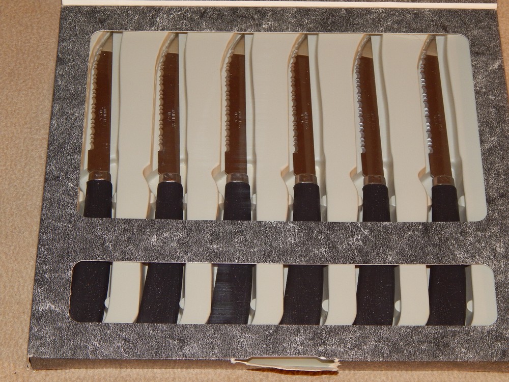 This vintage Quikut premium stainless steel with plastic handle steak knife was acquired from an estate we took in. They are New Old Stock. See all pictures