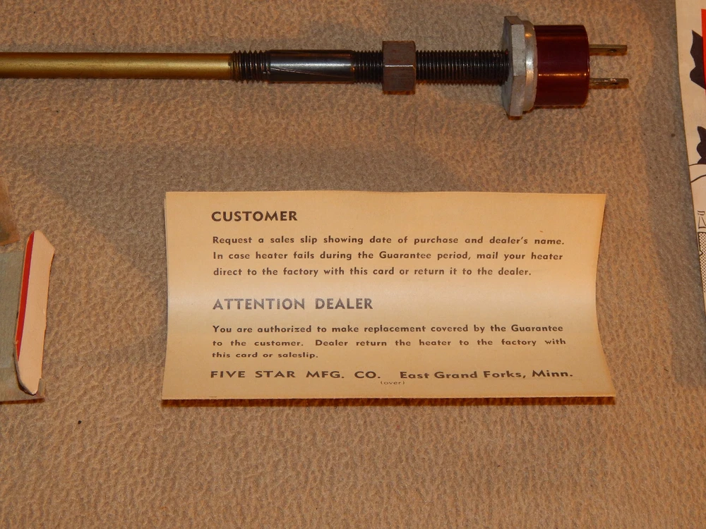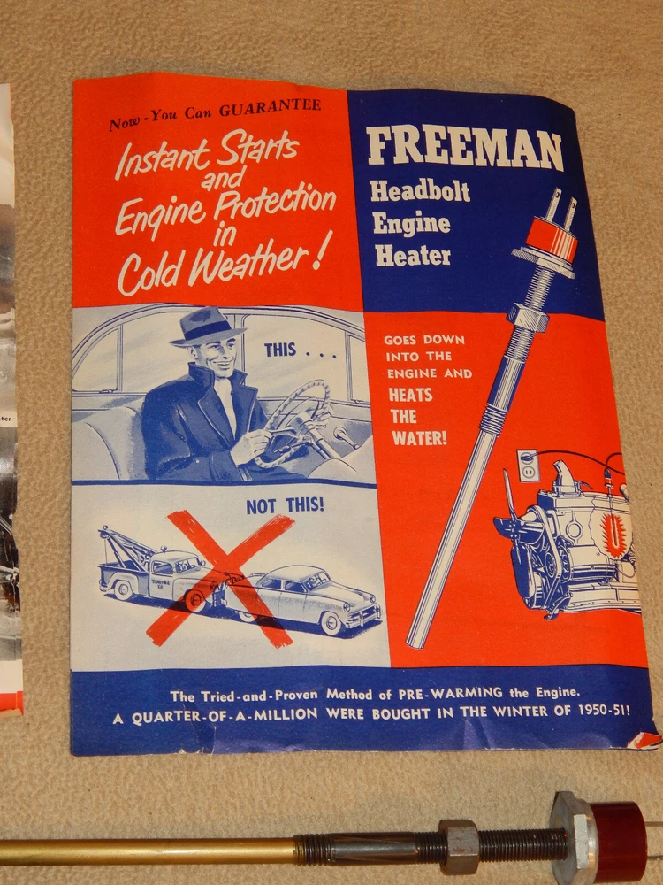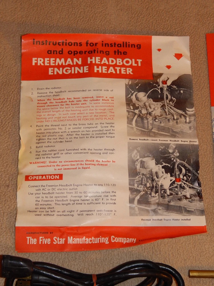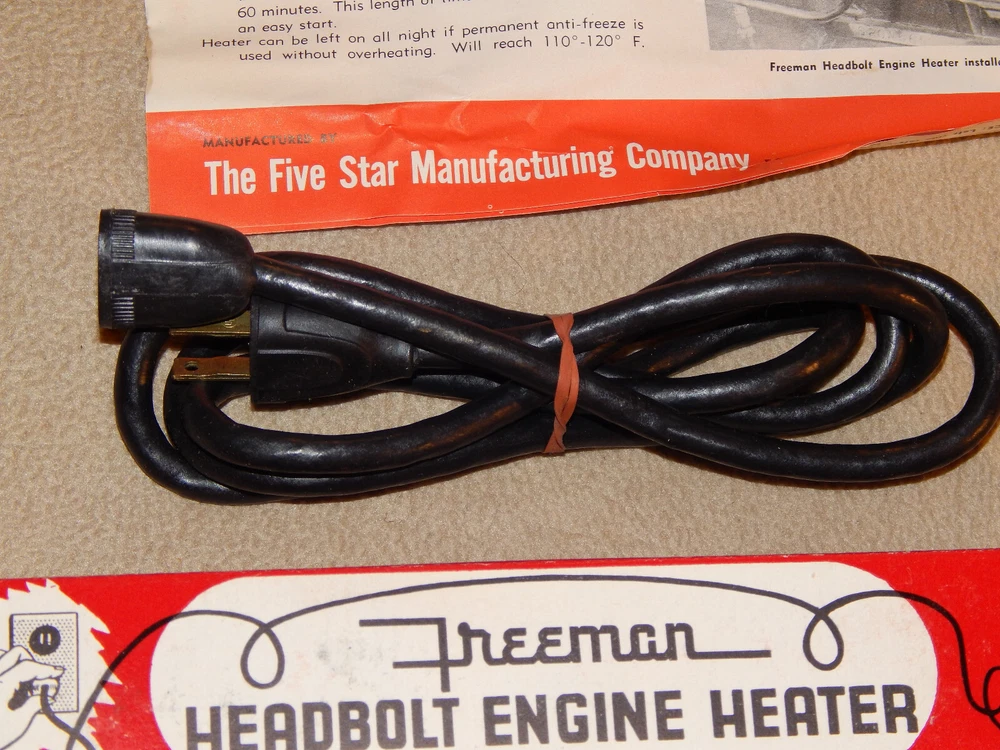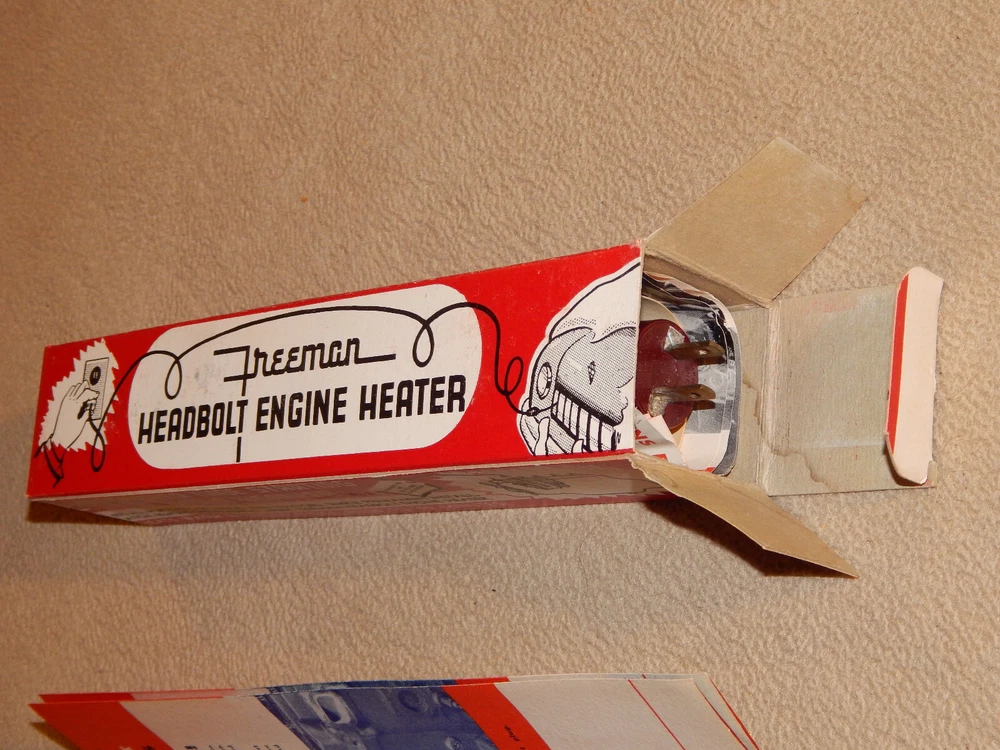 We got this Vintage Freeman Headbolt Engine Heater with original box, Instructions, and advertisements from an estate we took in. It only comes with what is shown in the pictures. Because this is a Vintage item it is being sold AS IS