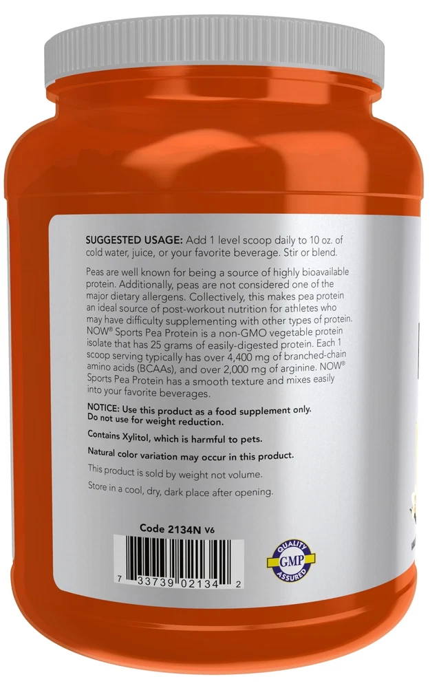 NOW Foods Sports Nutrition, Pea Protein 25 g With BCAAs, Easily Digested, Vanilla Toffee Powder, 2-Pound NOW Sports products are comprehensively tested so you can trust that our products are pure and effective for every level of athletics 25 G PROTEIN PER SERVING: A non-GMO vegetable protein isolate that has 25 grams of easily-digested protein WITH BCAAs: Each 1 scoop serving typically has over 4,400 mg of branched chain amino acids (BCAAs) and over 2,000 mg of arginine GMP Quality Assured: NPA A-rated GMP certification means that every aspect of the NOW manufacturing process has been examined, including our laboratory/testing methods (for stability, potency, and product formulation) Packaged in the USA by a family owned and operated company since 1968 With BCAAs 25 G Protein Peas are well known for being a source of highly bioavailable protein. Additionally, peas are not considered one of the major dietary allergens. Collectively, this makes pea protein an ideal source of post-workout nutrition for athletes who may have difficulty supplementing with other types of protein. NOW® Sports Pea Protein is a non-GMO vegetable protein isolate that has 25 grams of easily-digested protein. Each 1 scoop serving typically has over 4,400 mg of branched chain amino acids (BCAAs), and over 2,000 mg of arginine. NOW® Sports Pea Protein has a smooth texture and mixes easily into your favorite beverages. Natural color variation may occur in this product. This product is sold by weight not volume. Shipping We offer FREE shipping on all orders! We ship within Three business days of payment, usually sooner. We use a selection of shipping services such as UPS, FedEx, USPS etc. We only ship to the lower 48 states, no APO/FPO addresses or PO Boxes allowed. Local pickups and combined shipping options are not provided at this time. Return You can return a product for up to 30 days from the date you purchased it ONLY if it's in the original condition. The product cannot be used or open. Any product you return must be in the exact same condition you received it and in the original packaging. Please keep the receipt. Feedback Customer satisfaction is very important to us. If you have any problem with your order, please contact us and we will do our best to make you satisfied. Contact Us If you have any queries, please contact us via ebay. We usually respond within 24 hours on weekdays. Please visit our eBay store to check out other items for sale! Thank you for shopping at our store.