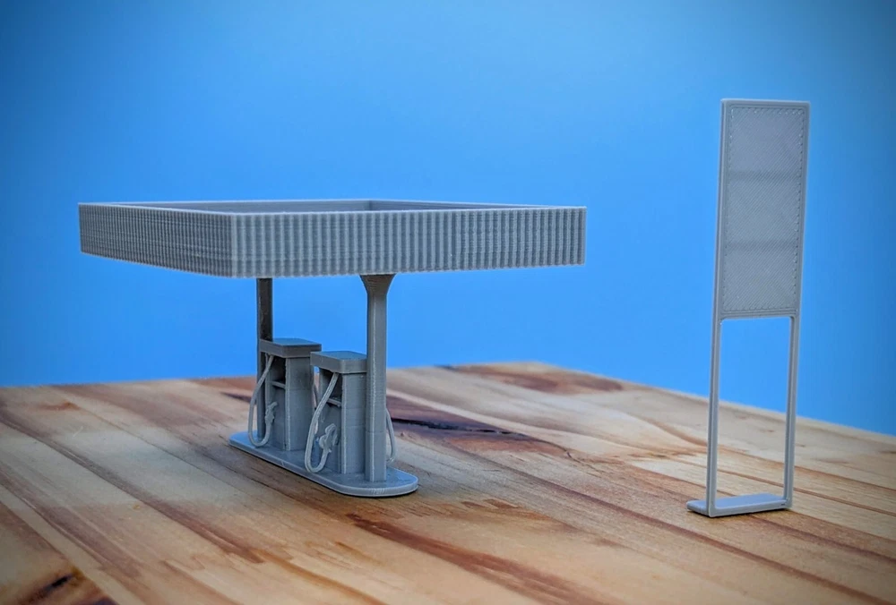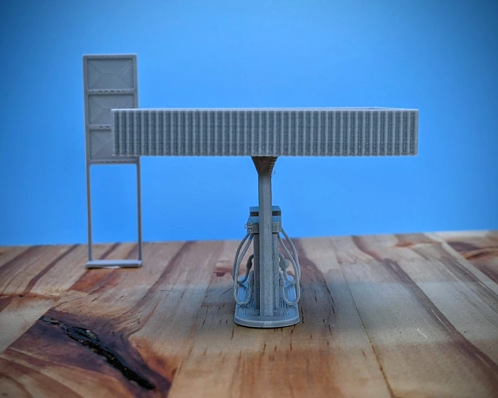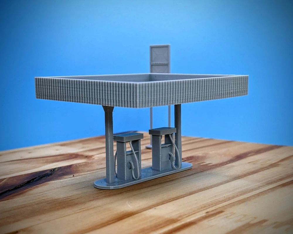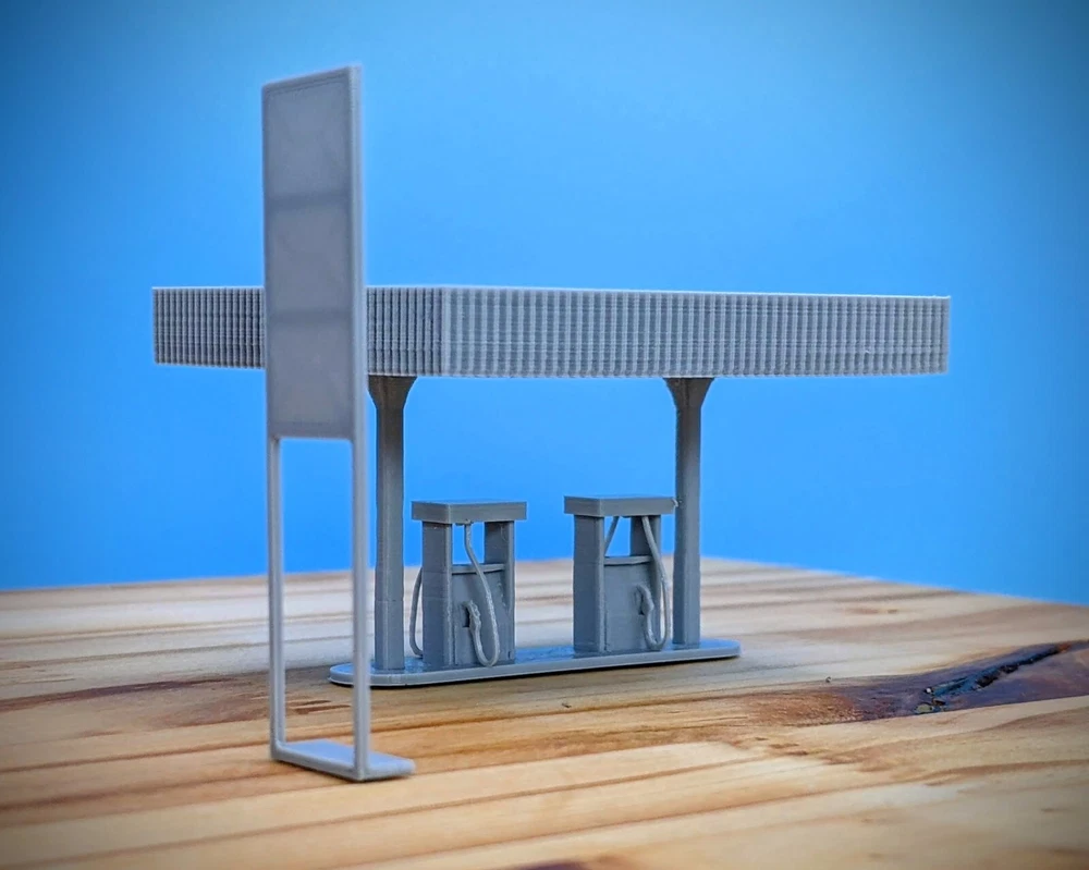 N-scale Gas Pumps High detail N-Scale Gas Pump! 1 to 5 pump set available Pictures and Measurements are for the 2 pump set Minimal assembly required Item in 6 pieces to make painting easier Model Footprint: 2.5" wide x 2.1" deep x 1.5" tall Recommended paint - Acrylic Recommended glue - Super Glue Gel 3D Printed in gray using high-quality PLA plastics Made in the USA Feel free to ask me any questions! Thank you!