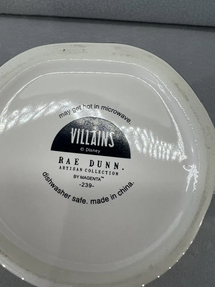 This Rae Dunn Disney Villains Queens of Mean mug is perfect for any Halloween occasion. The round, double-sided ceramic mug features a glossy finish and is handmade with the production technique of pottery. The mug is an original, not a licensed reproduction, and was manufactured in China in 2023. The ivory-colored mug is not signed and is not vintage. It is part of the Disney Villains collection and is perfect for any fan of the popular Disney series. This mug is a great addition to any pottery or decorative cookware collection. Fast shipping Non smoking