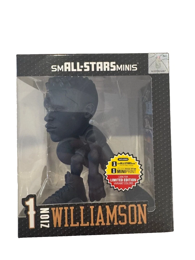 Fast Shipping! Celebrate your fandom with the Small-Stars NBA Action Figure featuring the dynamic Zion Williamson of the New Orleans Pelicans. This collectible showcases the star player in his iconic all-black gear, perfectly capturing the essence of his on-court style. Crafted with attention to detail, the figure stands at an impressive 6 inches tall, making it a standout display piece for any fan's collection.The figure is officially licensed by the NBA and represents the quality and authenticity that fans have come to expect from the league's merchandise. It's a must-have for basketball enthusiasts and collectors alike, honoring the regular season and the skill of one of the NBA's rising talents. Whether for play or display, this action figure is a tribute to the legacy of Zion Williamson and his contribution to the sport of basketball.