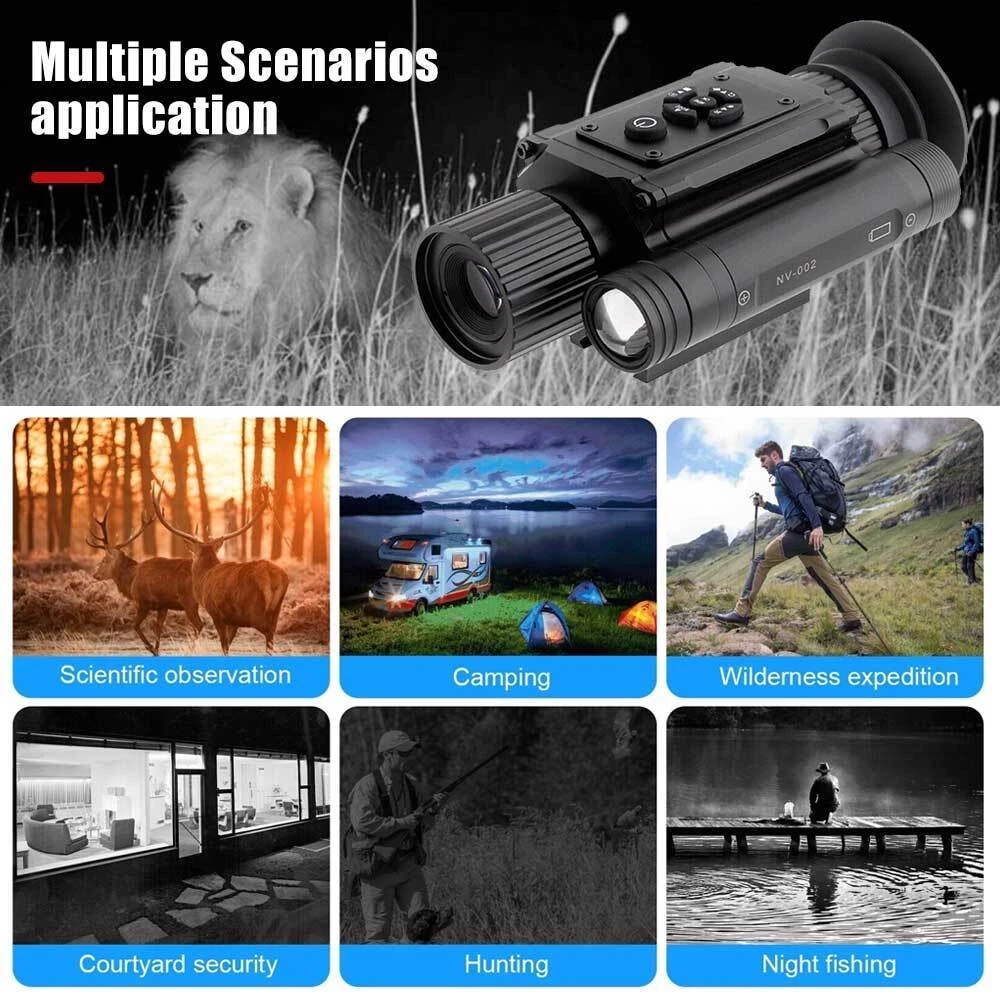 You may also like 3D/8X Night Vision Goggles Head Mounted Binoculars Infrared Outdoor for Hunting 125.99 USD Free shipping 7X Digital Night Vision Monocular Cross Cursor 850nm Infrared Scope Hunting 500M 75.99 USD Free shipping VRNV300 Infrared Night Vision Binoculars 4K 3D Head Mounted Goggles 6X Zoom 300M 276.99 USD Free shipping Hunting Digital Night Vision Monocular Cross Cursor 7X Zoom Infrared 850nm Scope 88.99 USD Free shipping 500M Digital Night Vision Monocular 850nm Cross Cursor Infrared Scope Hunting 65.99 USD Free shipping NV4AS Full Color Night Vision Monocular Hunting 4X Zoom Infrared Telescope Sight 117.99 USD Free shipping Megaorei NK007 Plus 850nm Hunting IR Infrared Night Vision Monocular Telescopes 108.99 USD Free shipping Megaorei M5 940nm IR Infrared Night Vision Riflescope 1080P Camera Hunting 400M 146.99 USD Free shipping Megaorei M5 Infrared Night Vision Scope Record Video Hunting 850nm IR Camera 139.99 USD Free shipping Full HD 1080P Digital Night Vision Goggles Outdoor Infrared Monocular Binoculars 42.99 USD Free shipping Head-Mounted Night Vision Goggles Rechargeable Hand Free Night Vision Binoculars 125.99 USD Free shipping NV2180 Night Vision Binoculars 3.2" HD 4K 1080P 8X Digital Zoom Telescope 300M 59.99 USD Free shipping VRNV300 300M Infrared Night Vision Binocular 6X Digital Zoom 3D Hunting Telescop 262.99 USD Free shipping HD Night Vision Goggles Rechargeable Infrared Monoculars Focusable IR 5X ZOOM 56.99 USD Free shipping 4K 3D VR Night Vision Goggles Binoculars 6X Zoom Digital IR Head Mounted Sight 276.99 USD Free shipping LRB20 8x40 Ranging Telescope Binoculars 1500m Rangefinder for Camping Hunting 218.99 USD Free shipping Product Description Product Description Magnifying Power 1X-4X Model No. NV-002 IR Wave Length 850nm IR Power 3W Storage Type TF Card Transmission Method TF Card Type-C Data Cable Focusing 3CM-~~ IR Illuminate Distance 200M Photo Resolution 3072x1728 Video Resolution 1920x1080 Display Resolution 454x454 Output Typeg MP4 Frame Rate 30fps Voltage 3.7V Color Black Waterproof Yes Fog-proof Yes Shock-proof Yes Width 50mm Height 95mm Lenght 140mm Weight 260g Battery 1PC 18500 Power Source Battery (No Included) Package Included: 1x Night Vision Set 1x Cleaning Cloth 1x Introduction Menu Payment Shipping Returns Contact Us Feedback Here is a detailed description of the Payment policy. For Buy It Now item, an immediate payment is required (best offer items excluded). For Auction items, please paid within 5 days. We ship worldwide. Item will be shipped out 1 business day by Singpost after full payment received. Delivery Time: USA ------------------------------- 8-15 working days by China Epacket delivery. Australia ------------------------ 7-12 working days by AUpost-eparcel from China. UK/ Canada -------------------- 10-28 working days Europe -------------------------- 18-28 working days Italy/ South America ------ 28-40 working days We must exchange the item(s) within 7 days after you received it. Returns must have all original packaging and accessories. Opened or damaged merchandise are not eligible for returns/exchanges. Please allow up to 10 business days for returns to be processed. Shipping and handling charges are not refundable. 1 year manufactured warranty on all products, Warranty period starts from the date of purchase. Buyers need to responsible to pay for the returning package, pls make sure before you bid. For all orders, please note that: 1. Taxes and charges are not included in the item price or shipping charges. 2. Please check with your country's customs office to determine what these additional costs will be prior to bidding/buying. 3. If there is the cutsom fee casused by the cutsom detention, the buyer need to check with your country's customs and deal with it himself. If the item is defective or taking longer than usual to reach you, please do not leave us negative feedback. Send us a message through eBay and we will resolve the issue promptly. Thanks for your support and understanding! :) OUR WORKING Time(Beijing): 9:00am~6:00pm(Monday~Friday) If you have any questions, please contact us via ebay mail, we will reply you on the working day in China, and there will be no reply on the weekend, we will reply on Monday. Because the time zone between the seller and the buyer is different, please be patient and wait for your understanding. We will be happy to serve you. Dear Buyer, We appreciate your business, if you are satisfied with our service, please leave us a positive feedback and rate the details of the transaction (Detailed Seller Ratings) with a PERFECT 5 STARS . Our goal is to make sure you are happy and have a pleasant shopping experience with us. Please email us before leaving any 1 or 2 ratings, neutral and negative feedback or open any ebay or paypal dispute. We will do our best to resolve the issues. Please give us the opportunity to resolve any problem. It is impossible to address issues if we do not know about them ! Payment Here is a detailed description of the Payment policy. For Buy It Now item, an immediate payment is required (best offer items excluded). For Auction items, please paid within 5 days. Shipping We ship worldwide. Item will be shipped out 1 business day by Singpost after full payment received. Delivery Time: USA ------------------------------- 8-15 working days by China Epacket delivery. Australia ------------------------ 7-12 working days by AUpost-eparcel from China. UK/ Canada -------------------- 10-28 working days Europe -------------------------- 18-28 working days Italy/ South America ------ 28-40 working days Returns We must exchange the item(s) within 7 days after you received it. Returns must have all original packaging and accessories. Opened or damaged merchandise are not eligible for returns/exchanges. Please allow up to 10 business days for returns to be processed. Shipping and handling charges are not refundable. 1 year manufactured warranty on all products, Warranty period s