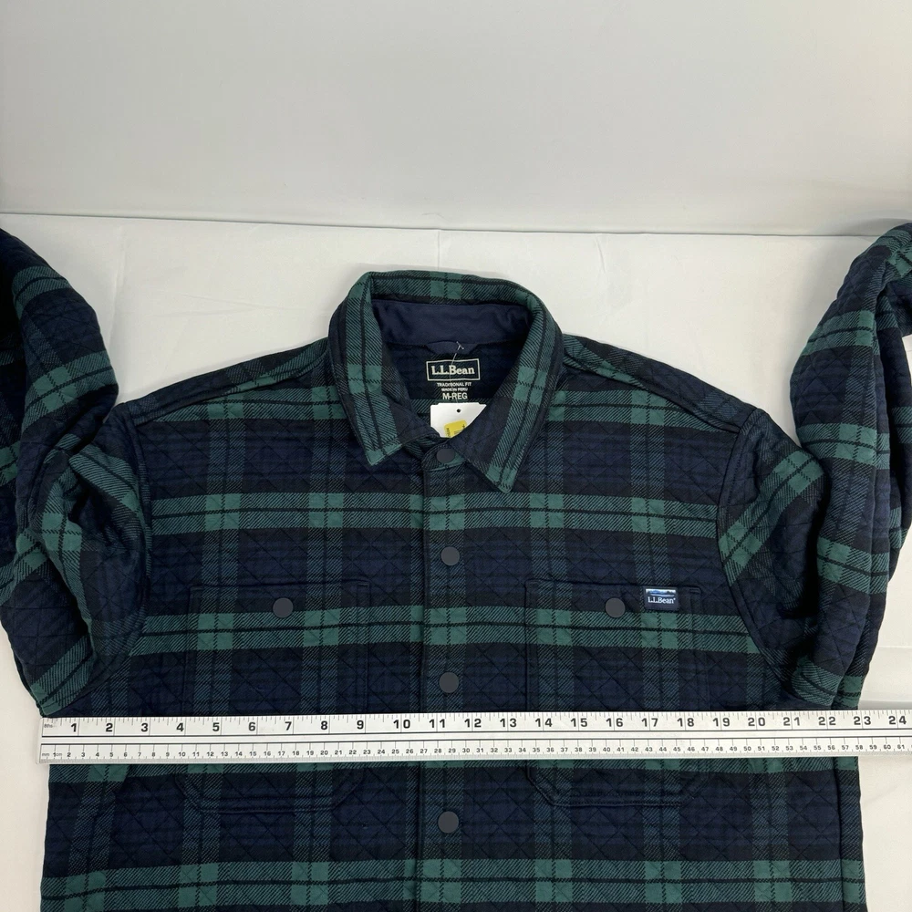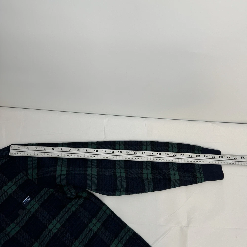 NWTD L.L. Bean Men's Quilted Sweatshirts Snap Overshirt Size M New with Defect Measurement laying flat +-0.5” Pit to pit is 23” Length is 30” Please see the measurements There is small repair please see the last photo