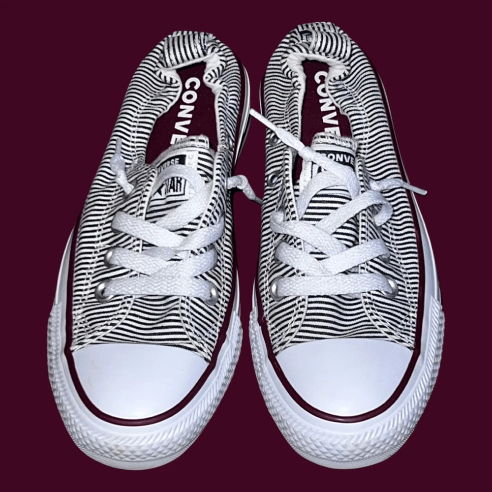 Women's Converse Chuck Taylor All Star Chambray Striped Shoreline Sneakers Size 5 SHOE FEATURES All-over tie-dye brightens the look up for the season SmartFOAM sockliner for comfort Softened stitching and lining SHOE CONSTRUCTION Canvas upper Mesh lining Foam midsole Rubber outsole Great Shape Clean Smoke Free Home Thanks For Looking!