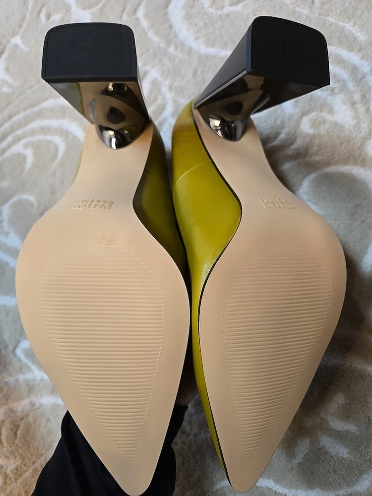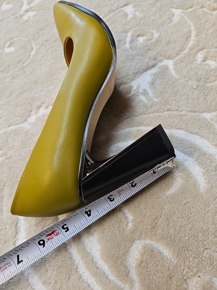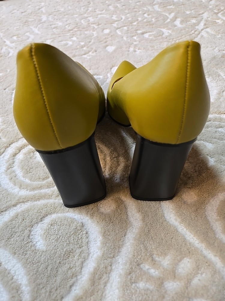 Add a touch of sophistication to your outfit with these stylish Guavaivy pointed toe heels. The olive green color and slip-on closure make them perfect for both business and party occasions. The high block heel is both comfortable and chic, with a rubber outsole for added support. These size 9.5 pumps are made of synthetic upper material and have a standard shoe width. They are suitable for all seasons, including winter, summer, fall, and spring. Don't miss out on this timeless addition to your shoe collection! New Without Box 3.75" heel Please see photos for measurements and details :)