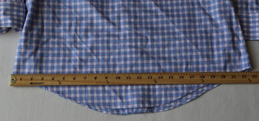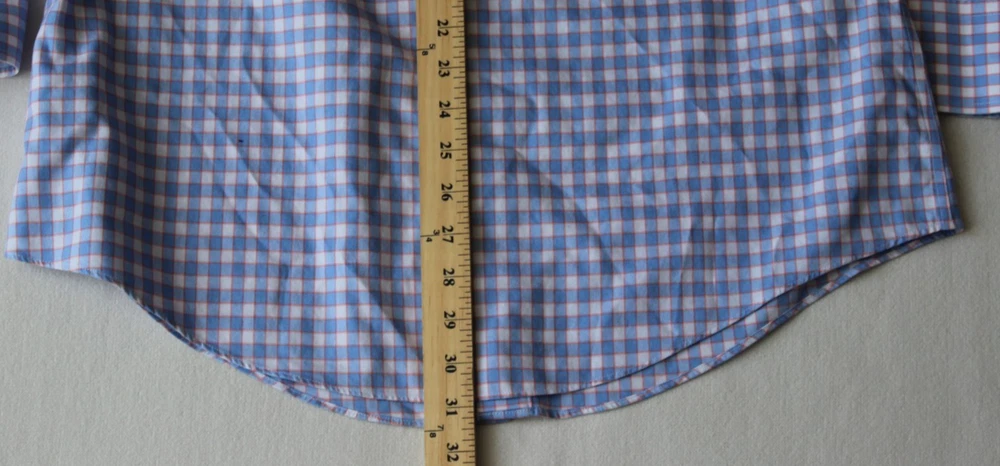 $ 7.39Roundtree & Yorke Gold Label Dress Shirt Mens 16.5 32/33 Blue Check Slim Stretch