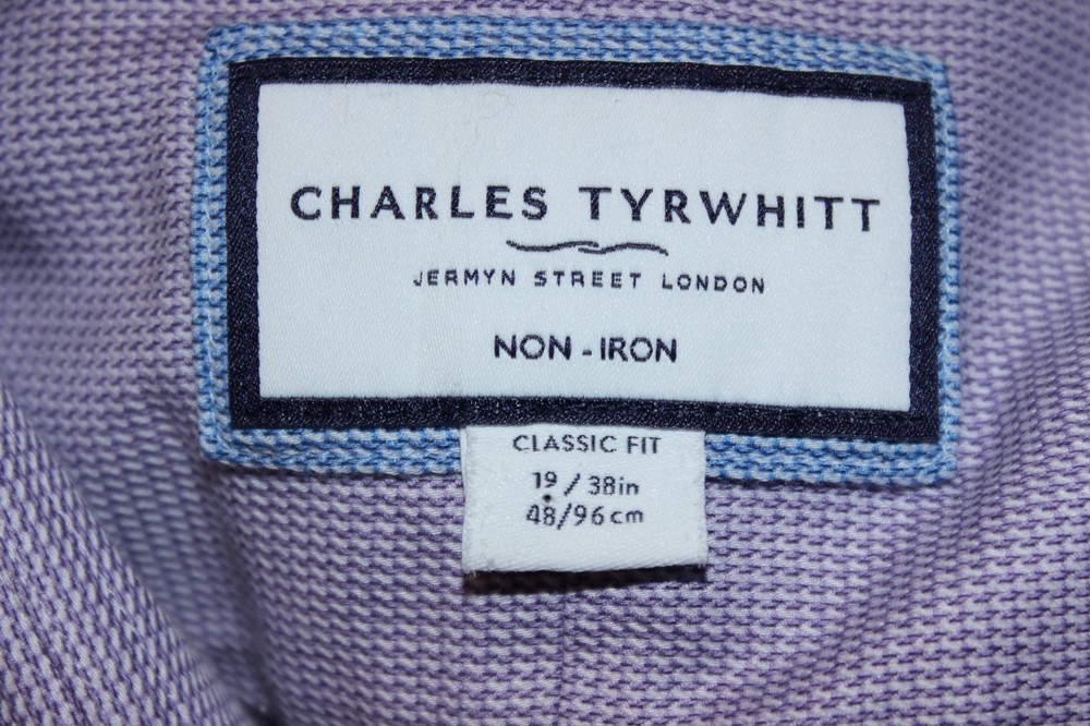 This NWOT Charles Tyrwhitt Men's Dress Shirt in size 19/38 is a classic and stylish choice for various occasions. Made from 100% cotton fabric with a purple puppytooth pattern, this shirt features a spread collar and button closure. The shirt is designed for big and tall sizes with a classic fit, making it comfortable and suitable for all seasons. The non-iron feature adds convenience for easy care, while the barrel cuff style adds a touch of sophistication to the overall look. Perfect for business, formal events, or casual wear, this designer shirt is a versatile addition to any man's wardrobe.