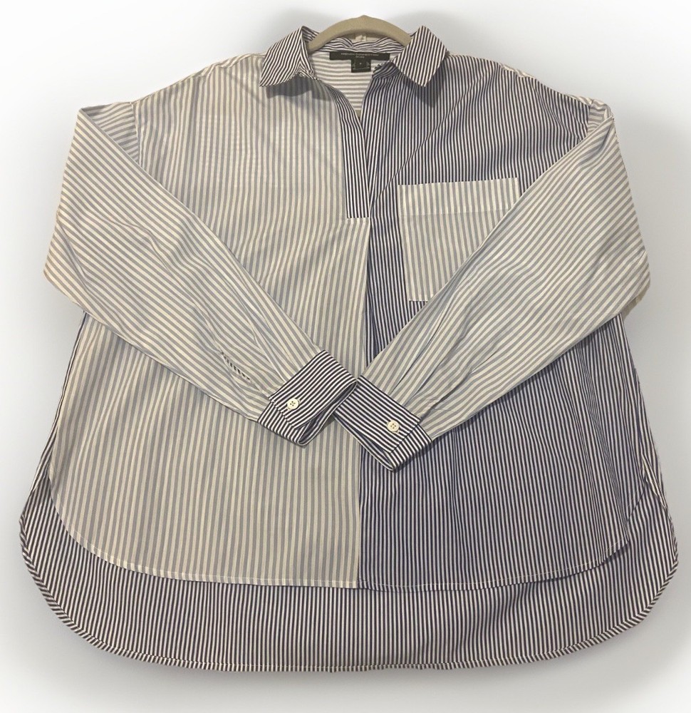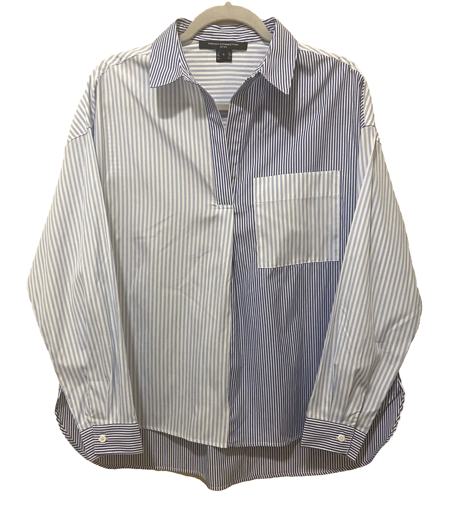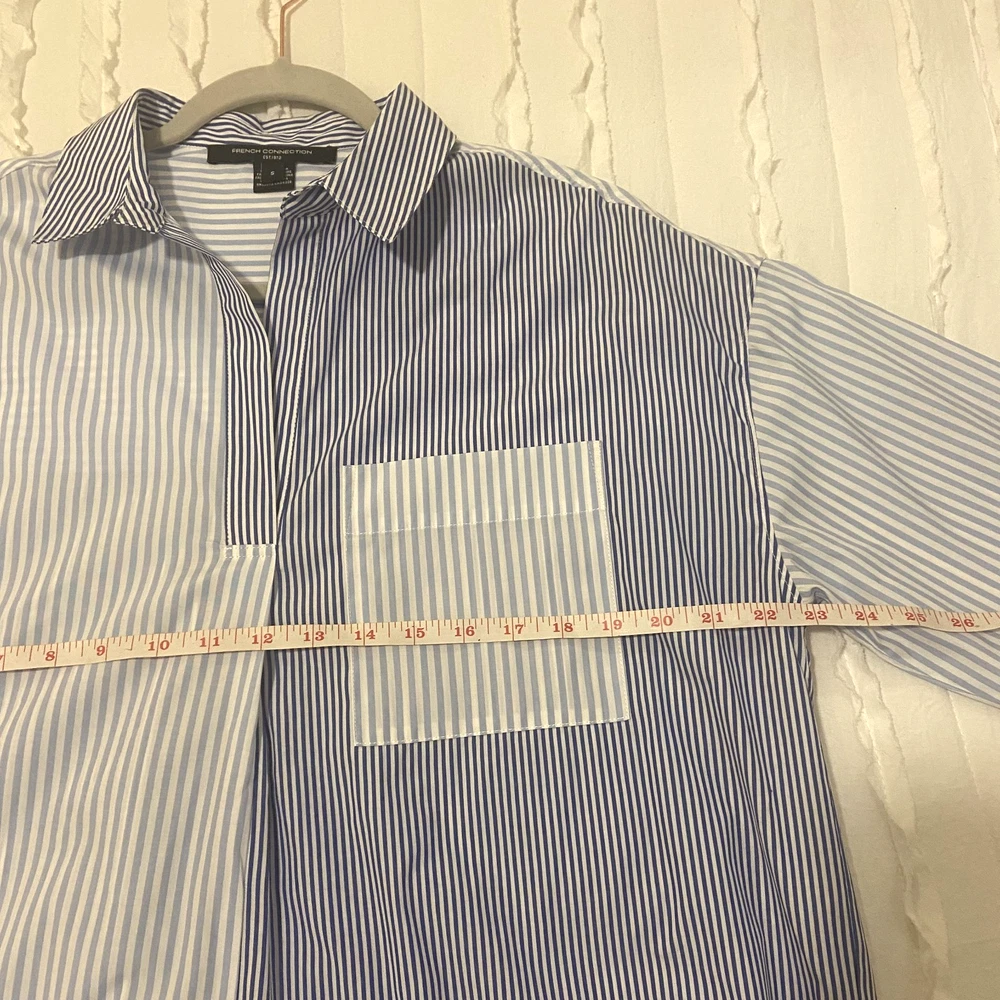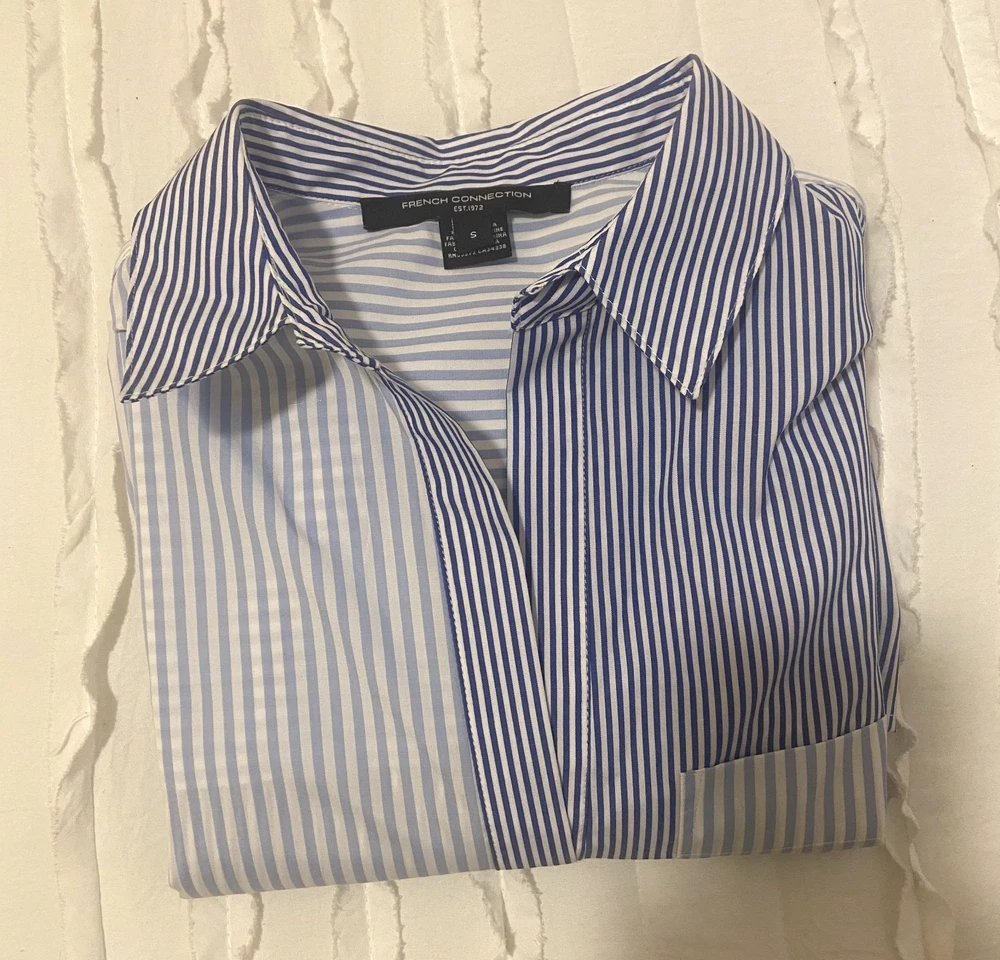 Add effortless style to your wardrobe with this NWOT French Connection Women’s Mixed Blue Striped Popover Shirt in Size Small . Designed with a blend of contrasting blue stripes, this top offers a modern, eye‑catching look that stands out while still feeling classic and versatile. The popover design provides an easy, relaxed fit that’s perfect for both casual days and polished outfits. Made from quality materials and crafted with French Connection’s signature attention to detail, this shirt delivers comfort, breathability, and a flattering silhouette. The mixed stripe pattern adds visual interest, making it easy to pair with jeans, trousers, or skirts for a chic everyday style. Please see photos for all measurements:) All items sold by Happy Life USA, LLC are accurately described in the condition section of each listing, and any flaws are clearly noted for the buyer prior to purchase. All pre‑owned items are pre‑washed (unless new with tags) and carefully placed into garment bags for added protection during shipping. We offer a 30‑day return policy, and buyers are responsible for all return shipping costs.