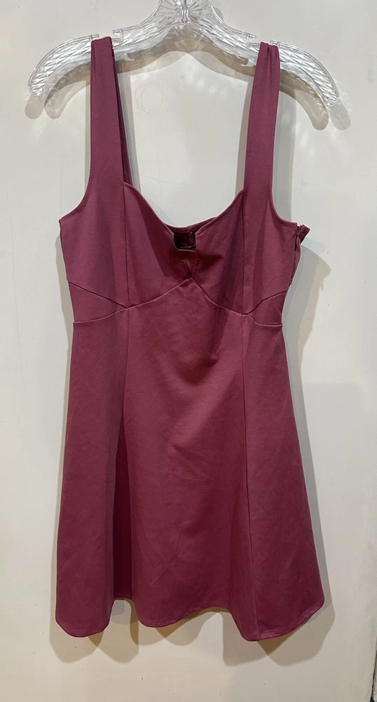 This beautiful JustFab mini skater dress is perfect for any occasion! The dusty rose color and sweetheart neckline add a touch of charm, while the zip closure and strappy sleeves give it a trendy edge. Made with a combination of polyester and spandex, this dress is both comfortable and machine washable. The dress comes in size L and is ideal for travel, weddings, parties, or casual wear. The collarless design and cut-out features make it unique, while the solid pattern and short length give it a classic look. The dress has accents like zipper and features like heart, hipster, rock, grunge, 50s, 60s, and steampunk that make it stand out. Get ready to rock this dress and steal the show! Measurements: Shoulder to hem: 36 inches Armpit to armpit: 18 inches