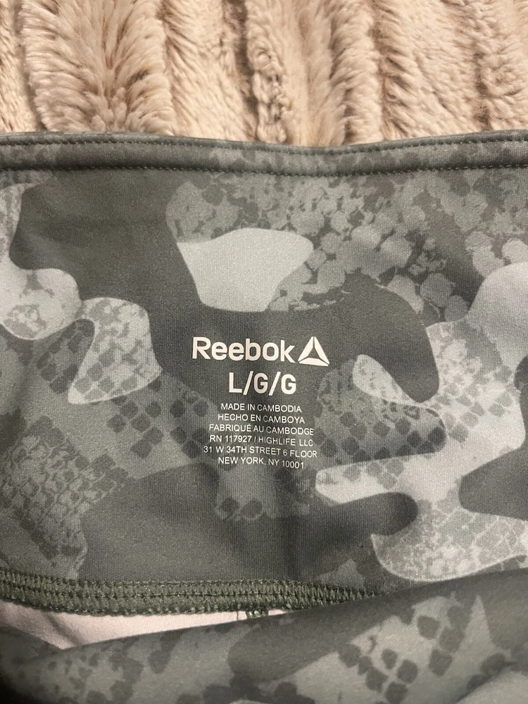 NWOT Reebok Biker Shorts Green Camo Size: large Excellent condition, never worn. Has 2 functional pockets. Smoke free and cat friendly home