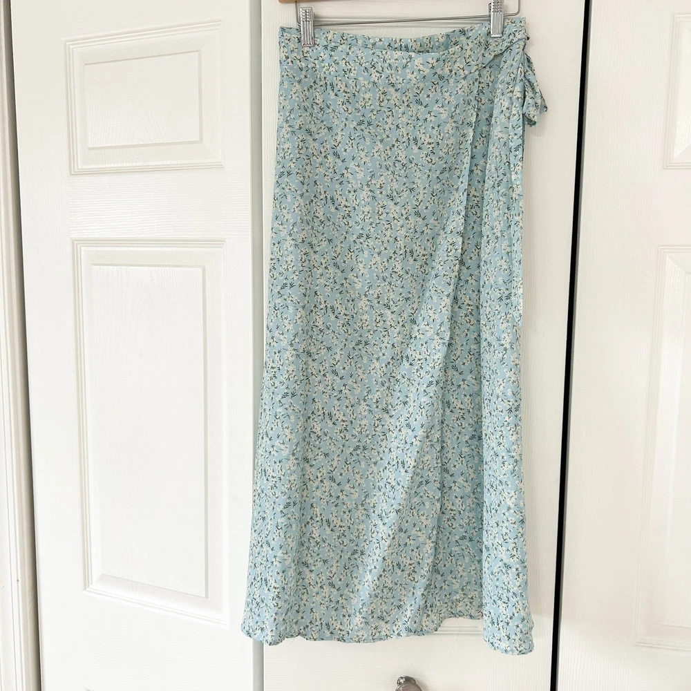 Beautiful SHEIN two-piece floral set in NWOT condition. This light blue matching set includes a ruffle-strap crop top and a wrap-style midi skirt with a flattering tie waist and front slit. Perfect for vacations, brunch, beach trips, or summer events. Top: • Ruffle straps • Sweetheart neckline • Back zipper closure • Light blue floral print • Pit to Pit: 17” • Length: 15” Skirt: • Wrap front with tie waist • Midi length • Flowing, lightweight fabric • Waist (flat): 14” • Length: 34” Size: Medium (EU 38 / US 6) Color: Light Blue Floral Material: 100% Polyester (lightweight + airy) Condition: NWOT — never worn, excellent condition. A gorgeous matching set that’s feminine, breezy, and super easy to style with sandals or wedges. U11
