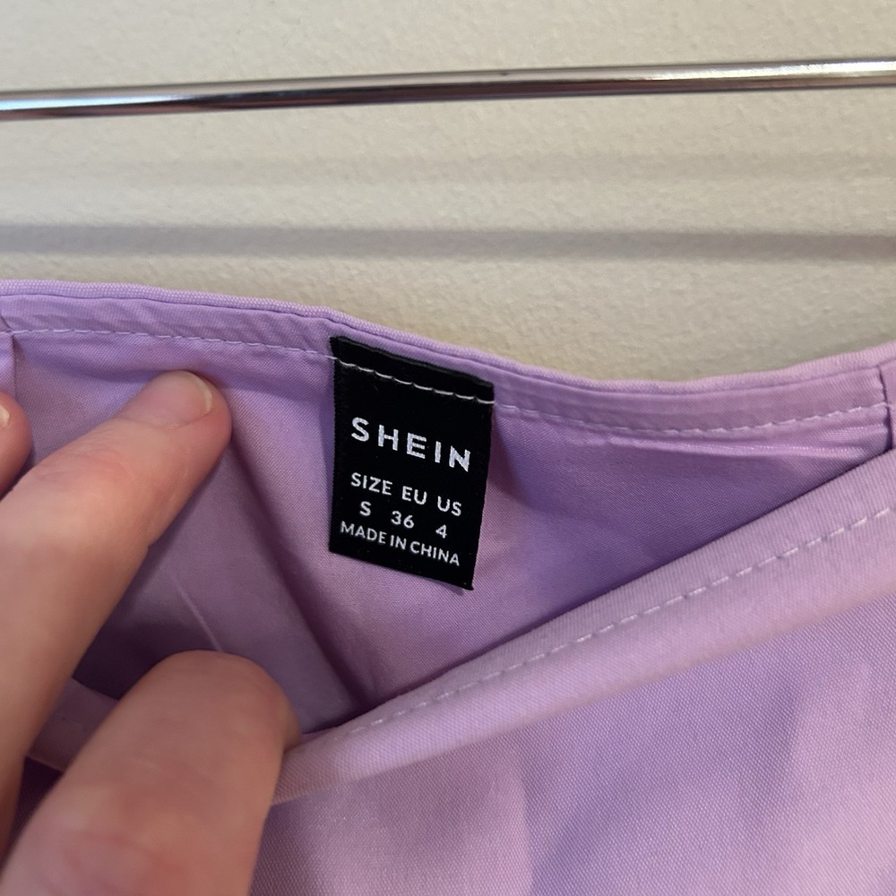 Elevate your wardrobe with this chic SheIn mini skirt in a stunning lavender purple hue. Its front slit feature adds a touch of elegance and versatility, making it a perfect choice for a range of occasions. Designed for the fashion-forward woman, the skirt comes in a comfortable size small, ensuring a flattering fit for your curve. Crafted with attention to detail, this skirt embodies casual sophistication with a hint of playfulness. Whether paired with a simple tee for a day out or dressed up with a blouse for an evening event, this skirt is sure to make a statement. Its color and style make it a delightful addition to any ensemble, perfect for those who love to express their personal style. A09