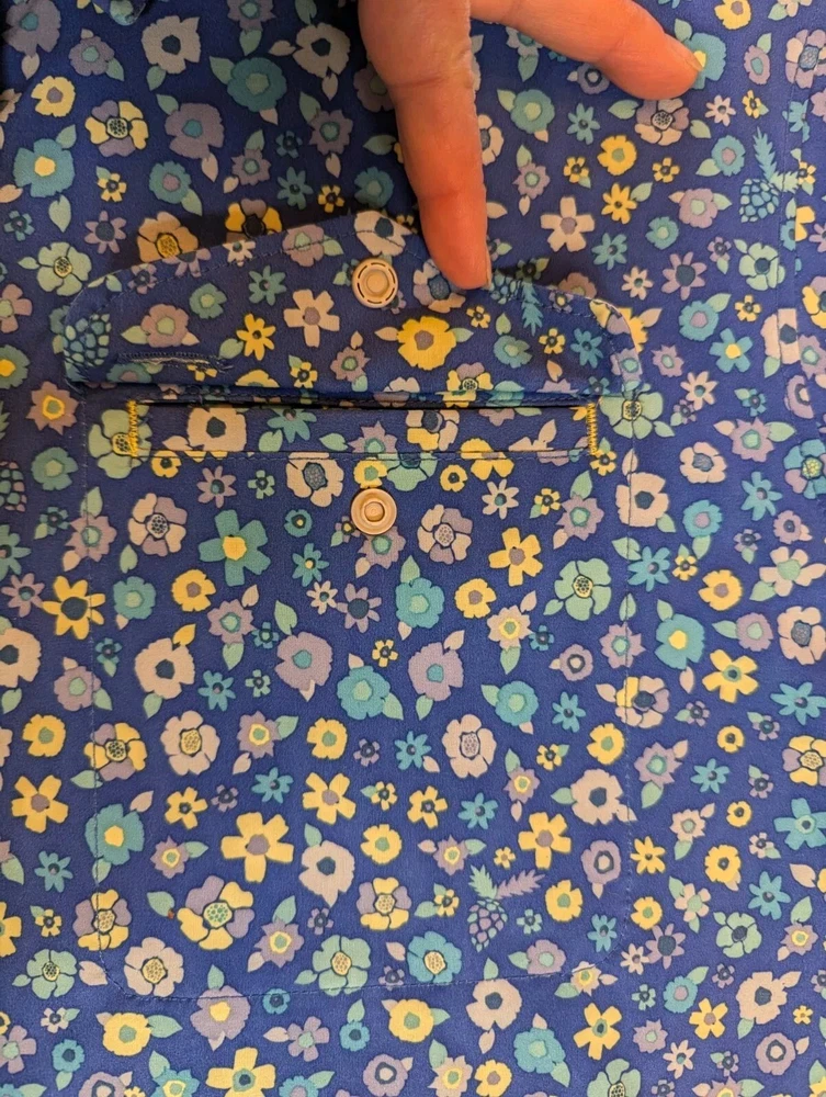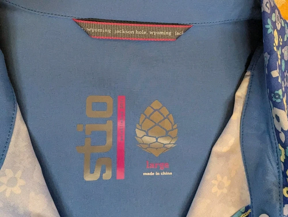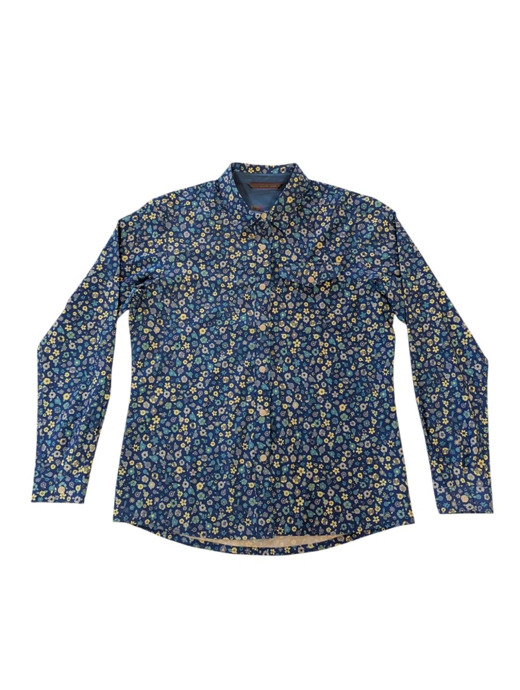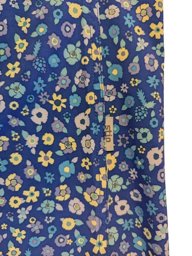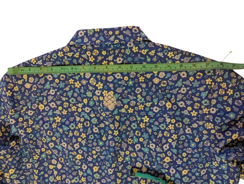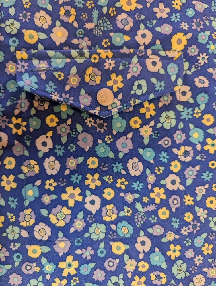 STIO Womenss floral print long sleeve stretch shirt. Great for many occasions: outdoors and indoors. Size Large, semi-fit style. Snap closure. Wrinkle free material, easy care. The shirt is new, without a tag. Check my pictures for measurements and details, please.
