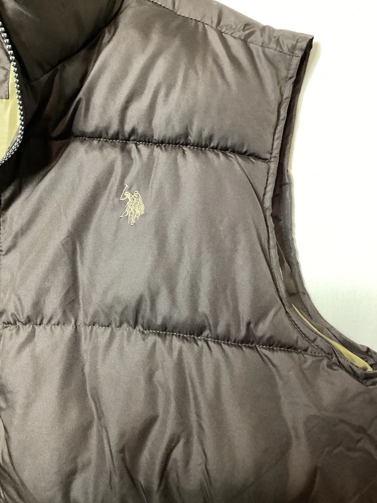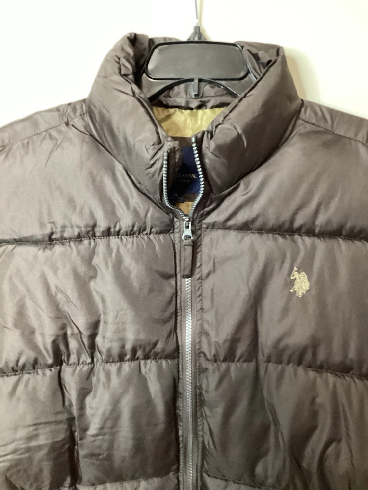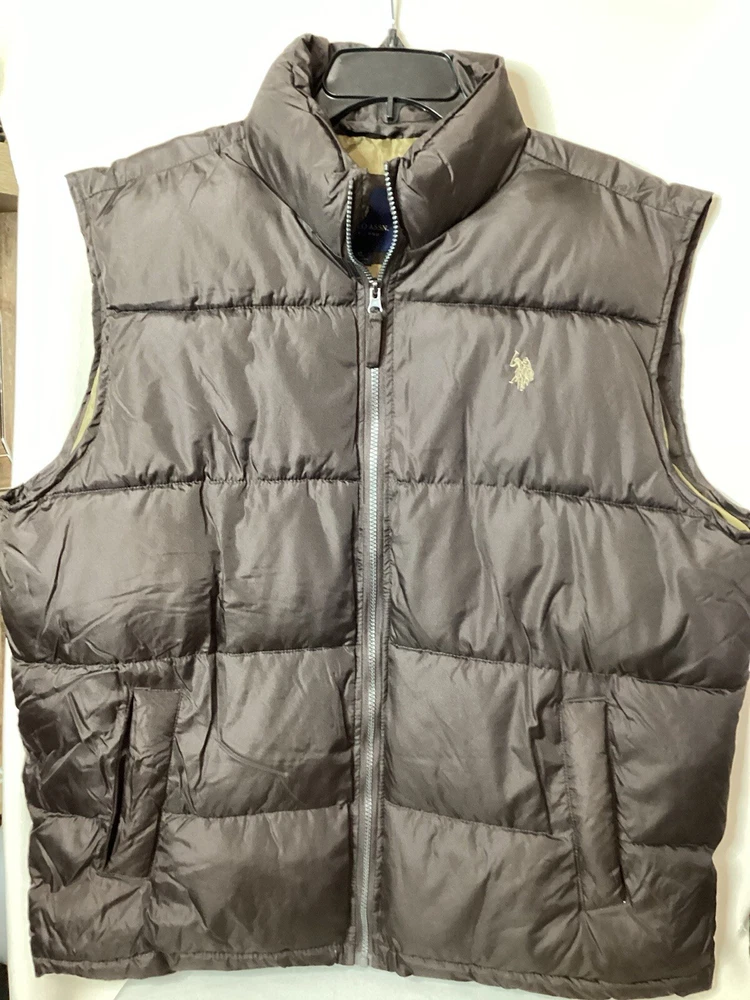 This U.S. Polo Assn. men's puff vest in dark brown is a versatile piece perfect for travel, casual outings, workwear, or business meetings. Made of softshell polyester material and insulated with polyester, it features a full zip closure and pockets for added convenience. The stand-up collar adds a touch of sophistication while the mid-length cut provides warmth and comfort. This vest is machine washable and comes in XL size with a regular fit. The vest is perfect for outdoor activities such as walking, golf, or hiking during the fall, winter, or spring seasons. The solid pattern and colorful theme make it a classic piece that can be personalized to match any style. The vest is not handmade and was manufactured in China. Get this U.S. Polo Assn. men's puff vest today to stay warm and stylish wherever you go.