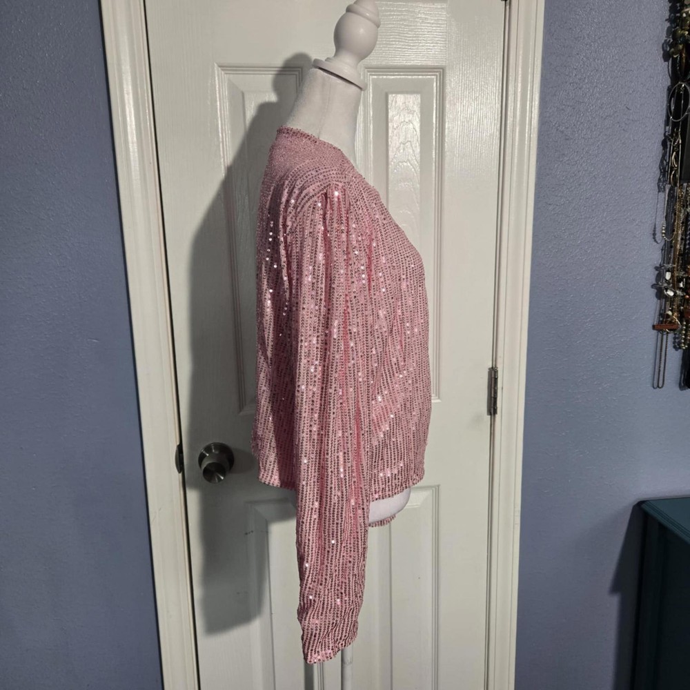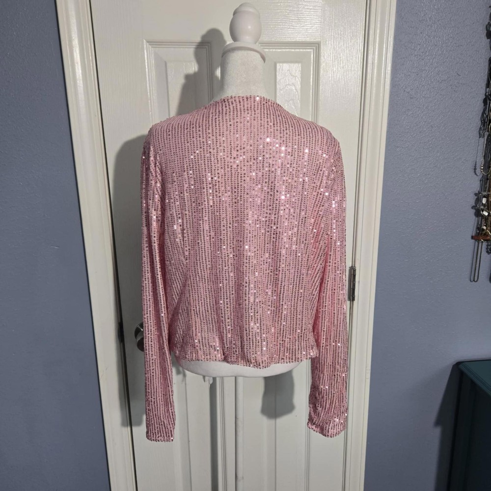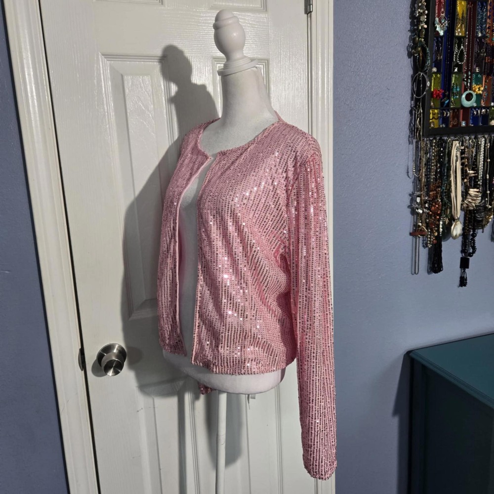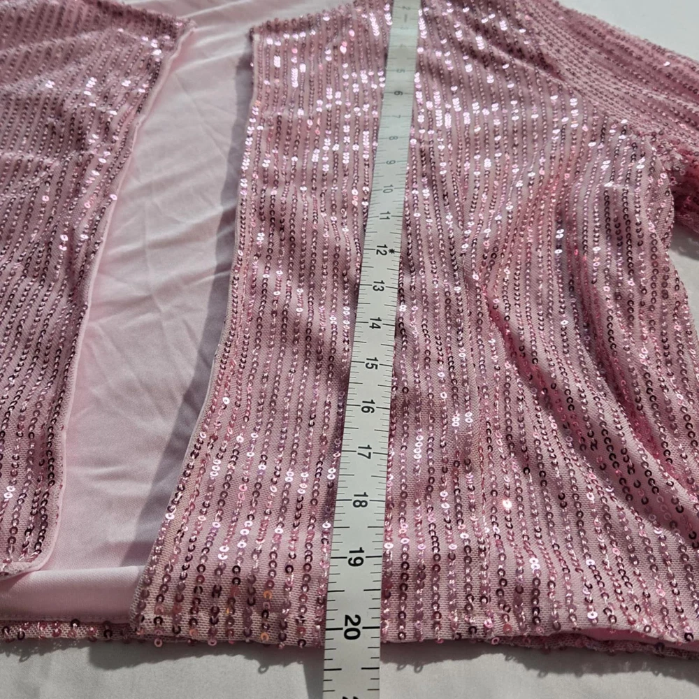 Elevate your style with this dazzling pink sequined cardigan jacket! Perfect for a night out or a festive occasion, it features an open front design adorned with shimmering sequins, offering a chic and glamorous look. The long sleeves provide added elegance, while the lightweight fabric ensures comfort. This statement piece is ideal for layering over a simple top or dress to add a touch of sparkle. Stand out in any crowd with this eye-catching jacket! - Open front design for easy wear - Long sleeves and relaxed fit - Perfect for parties or special events - Lightweight and comfortable - Adds a glamorous touch to any outfit
