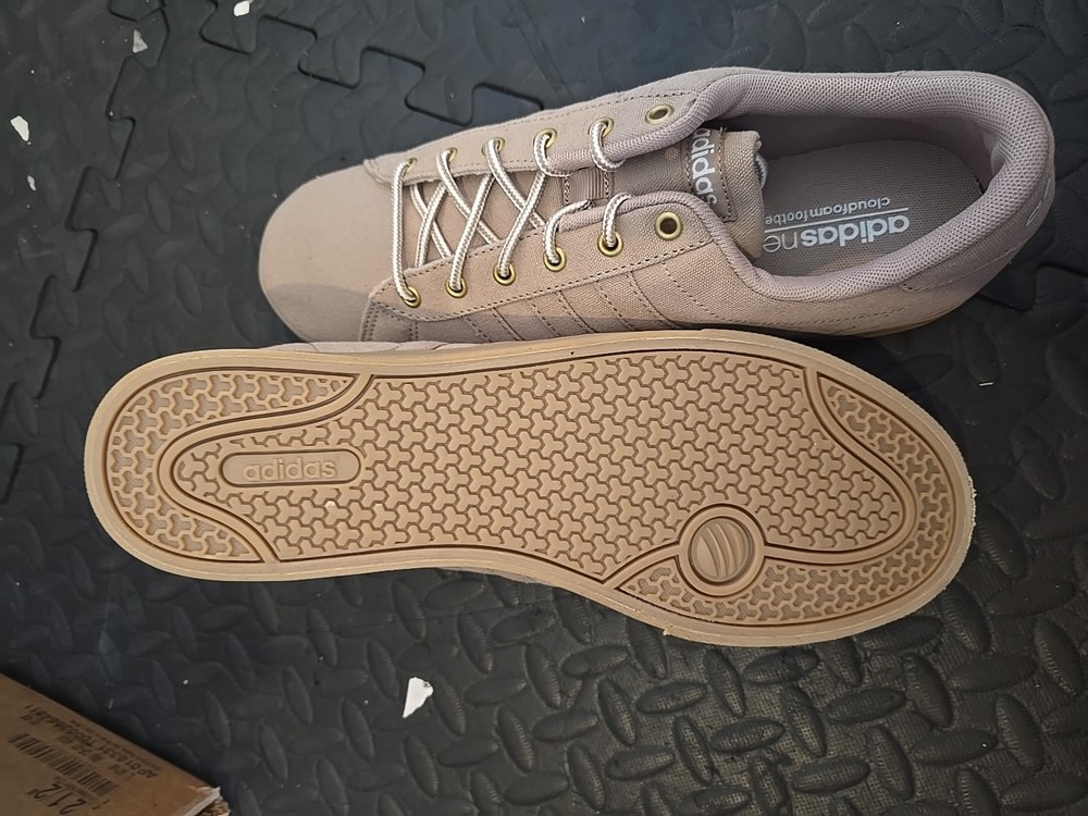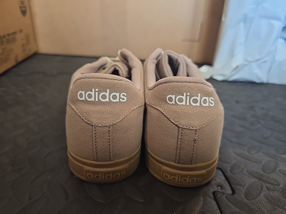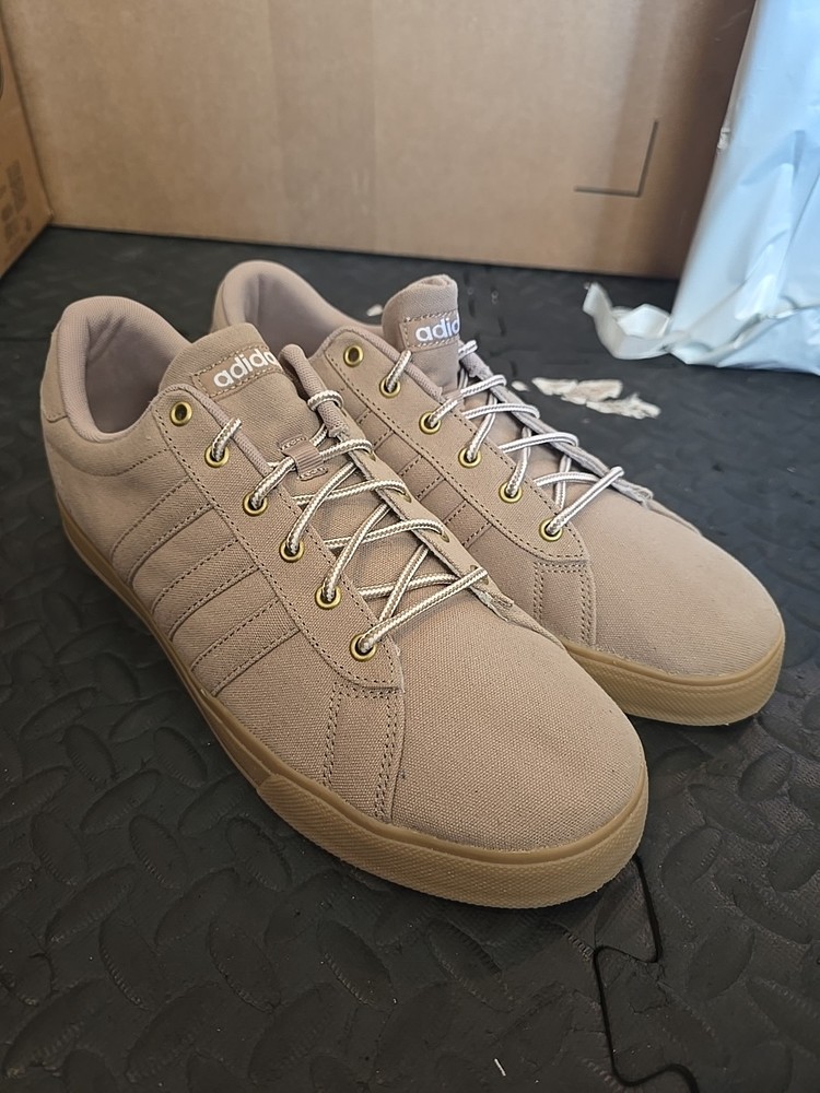 These Adidas Men's Neo Ortholite Canvas Lace Up Shoes in Khaki are versatile and stylish. With a round toe shape and lace-up closure, these sneakers are perfect for casual, travel, or workwear occasions. Made with lightweight and cushioned canvas and rubber outsole, they offer comfort and non-slip durability. The beige color, eyelet accents, and logo detailing add a trendy touch to the classic design. The orthopedic features and memory foam insole make them a practical choice for all seasons. Perfect for men looking for a comfortable and fashionable shoe option.