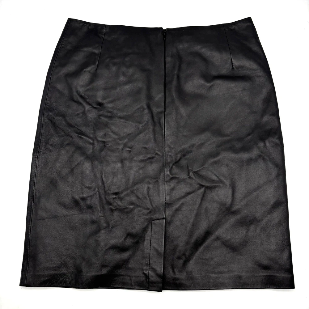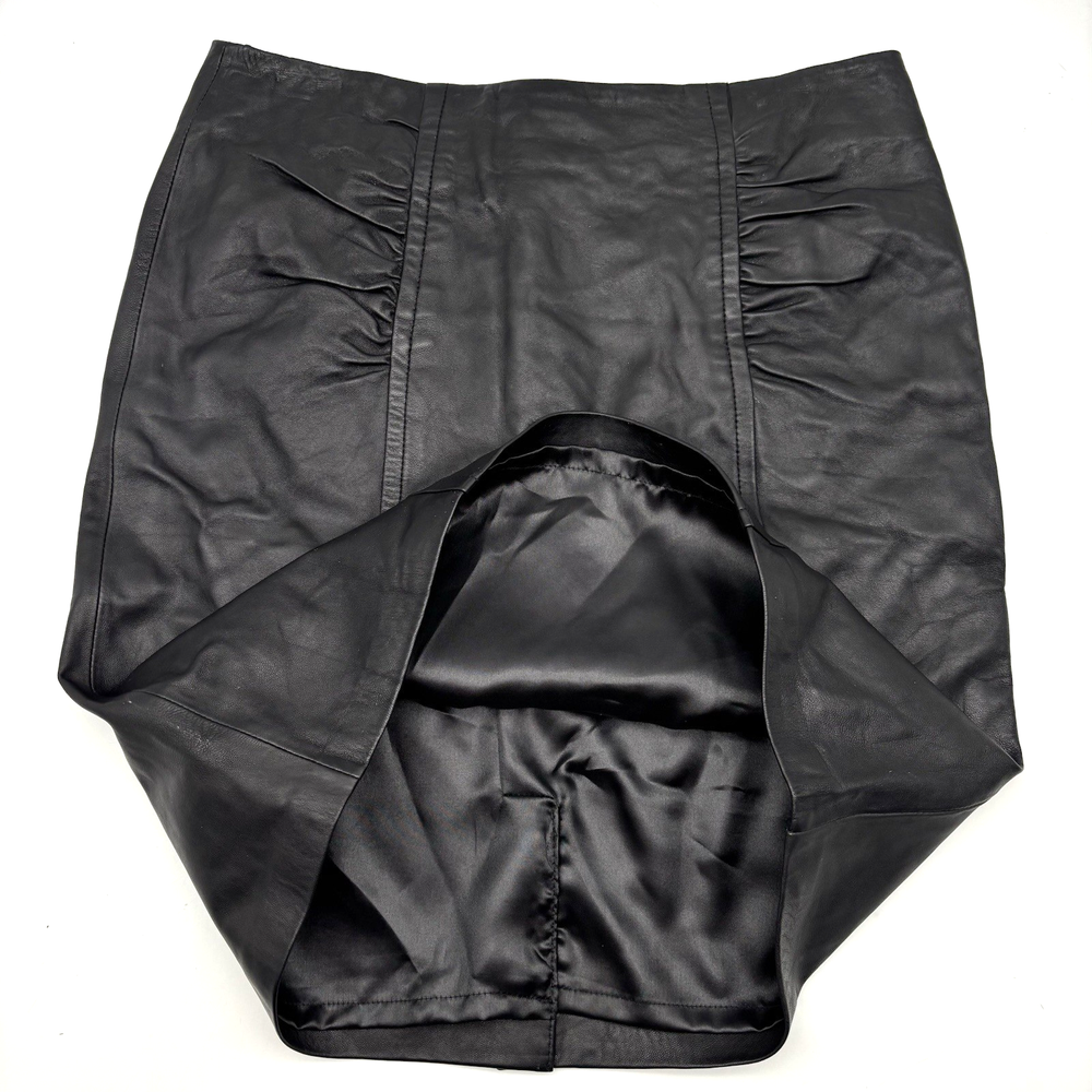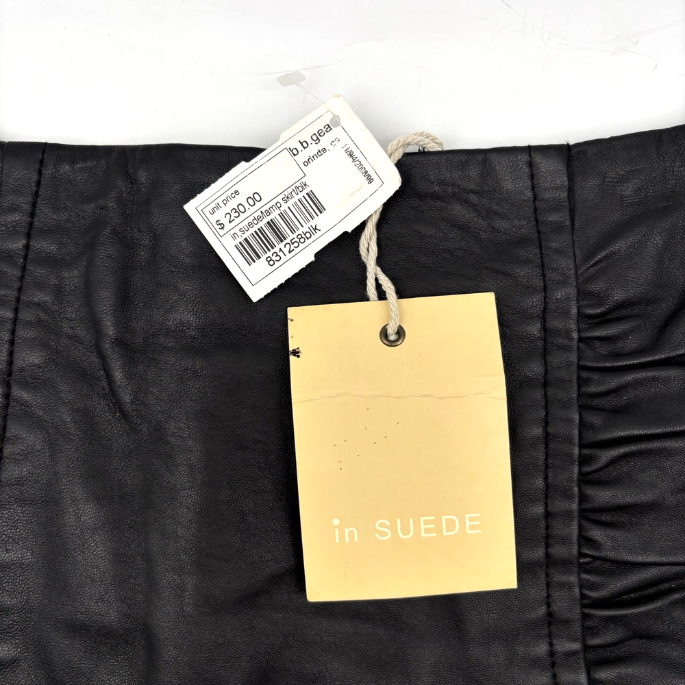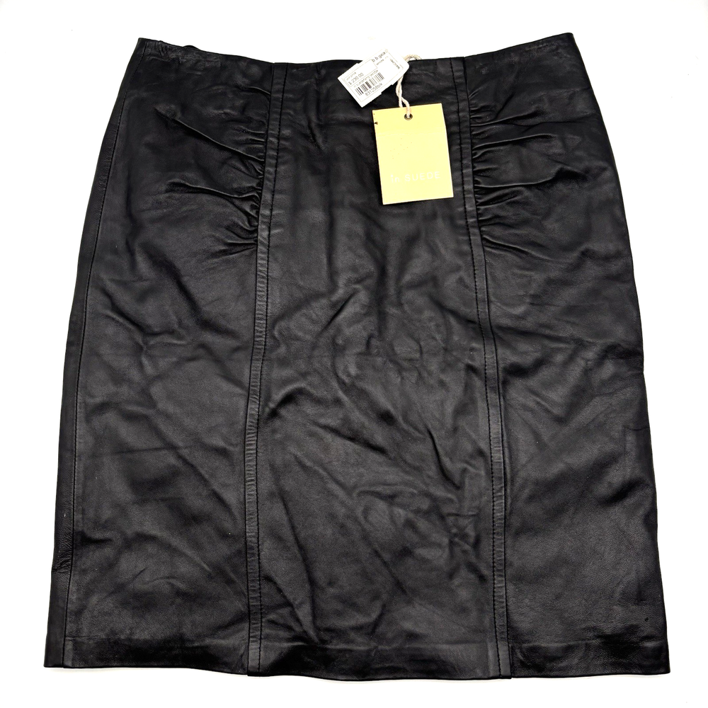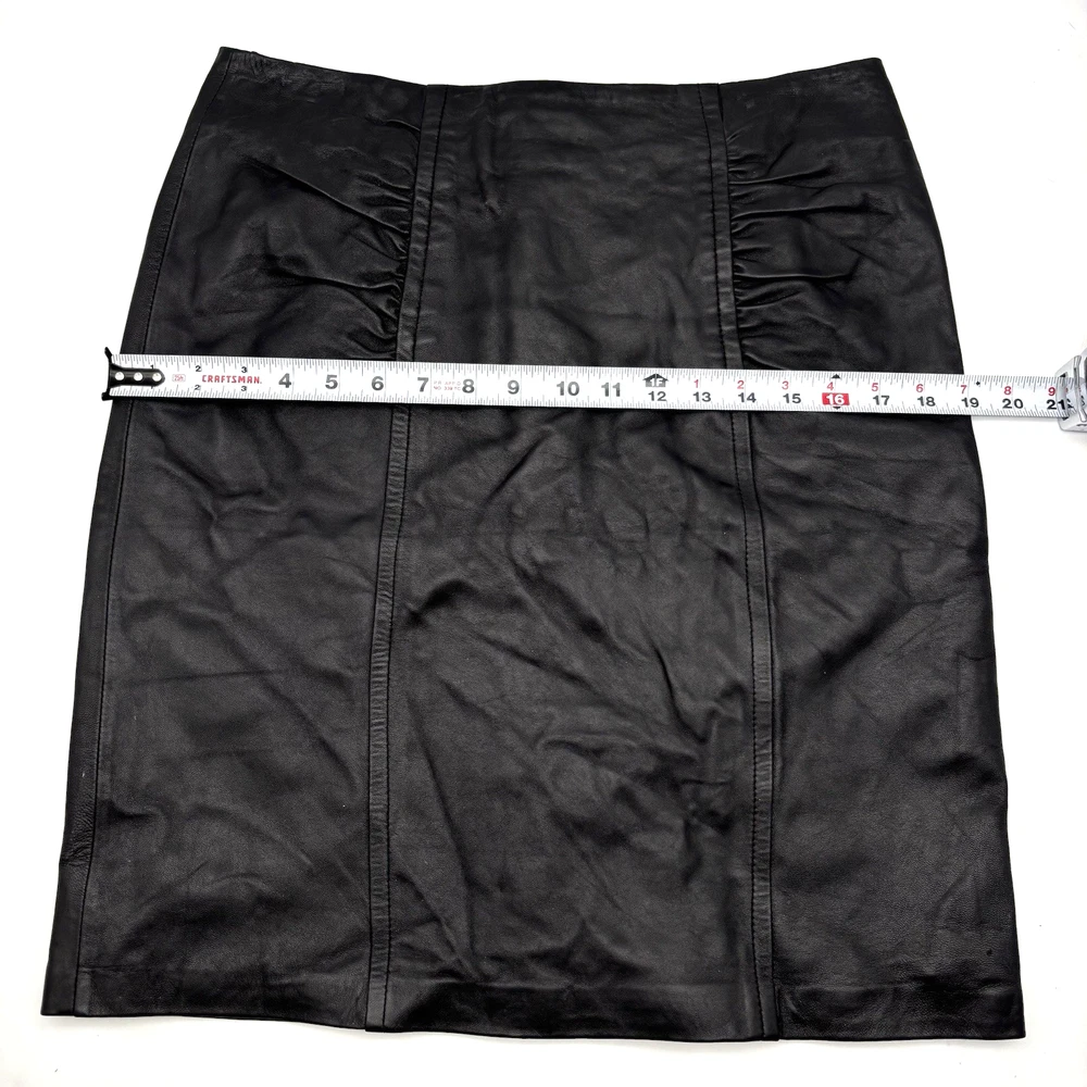 NEW 2008 in SUEDE Leather Pencil Skirt 100% Leather 100% Polyester Lining Solid Black Knee Length Flat Front No Pockets Zip and Hook & Eye Closure on Back Supple Leather No stretch! Professional Clean Only MSRP: $230.00 Women's Size 8 Please refer to measurements below to ensure accurate fit before purchase! 15" waist (30" circumference) 19" hips 19.5" hem 20.5" full length from waist to hem Measurements made with garment laying flat. Brand new, never worn condition with the original tags. No rips, tears, stains, holes or other notable flaws. Clean and from a smoke free home.
