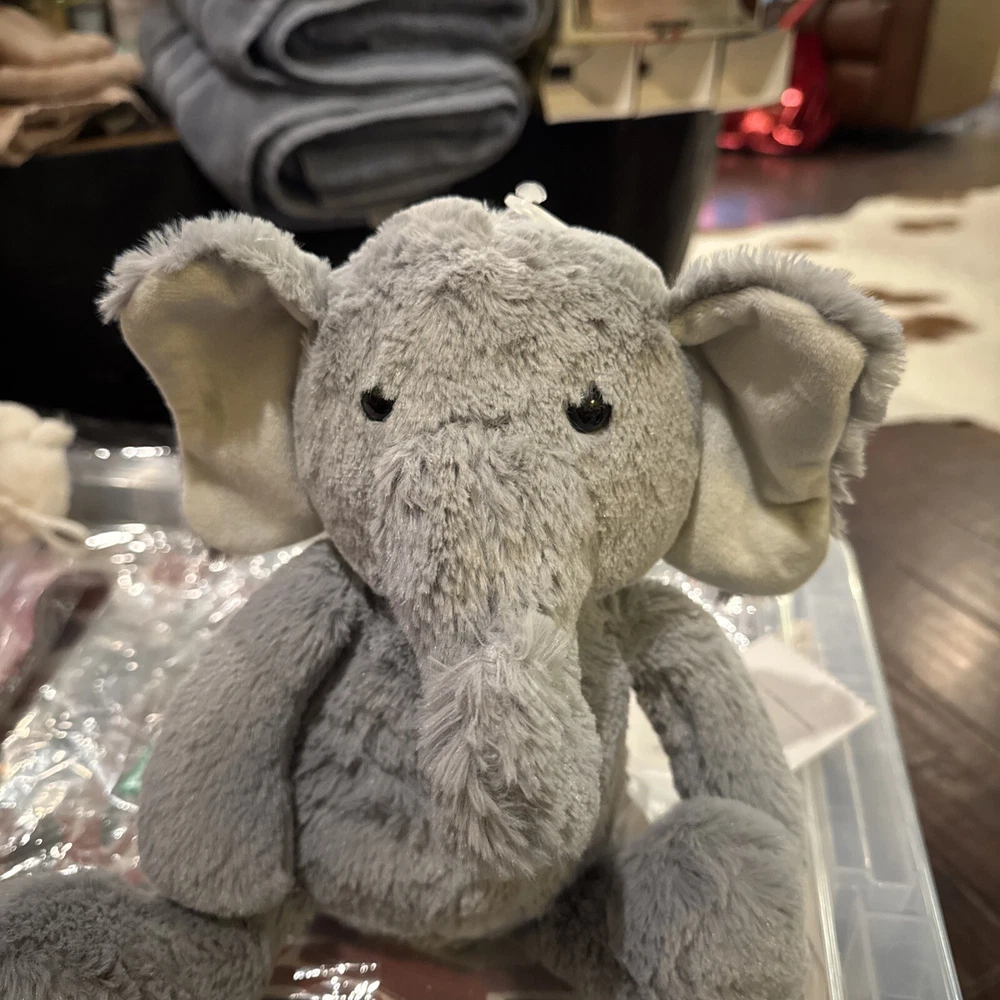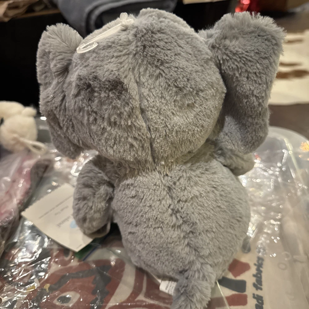 This plush gray elephant stuffed animal by Cloud Island at Target is a rare find from 2018. It is a small lovey, measuring between 6-14 inches, suitable for babies from birth and up. Made in China, this adorable stuffed animal is perfect for any occasion and features an elephant design that children will love. This hard-to-find item would make a great addition to any toy collection or as a special gift for a little one.