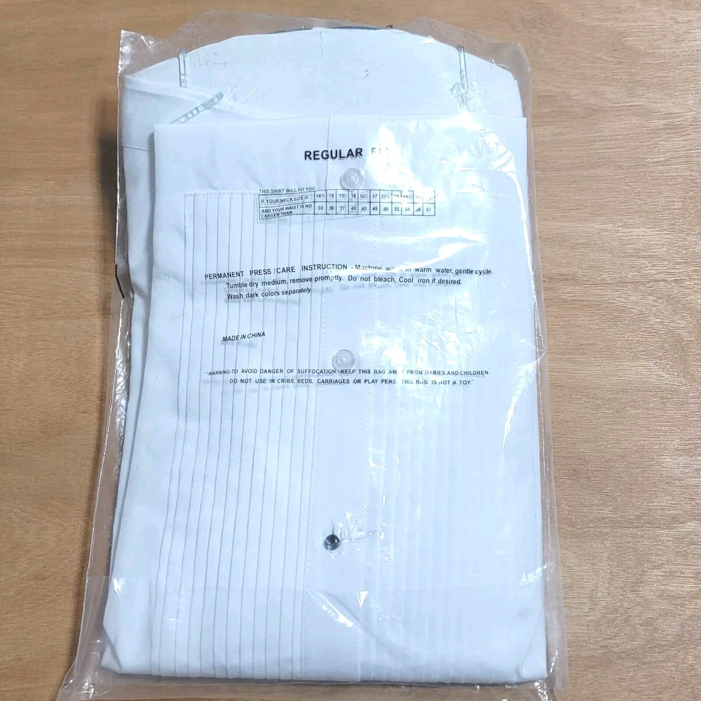 Valentino Tuxedo Shirt Men 16-34/35 White Tuxedo 100% Cotton French Cuff Formal