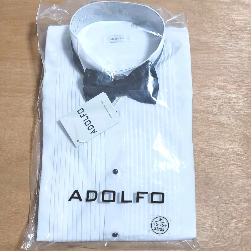 NWT ADOLFO White Tuxedo Shirt with Bow Tie Size 15-15 1/2 33/34