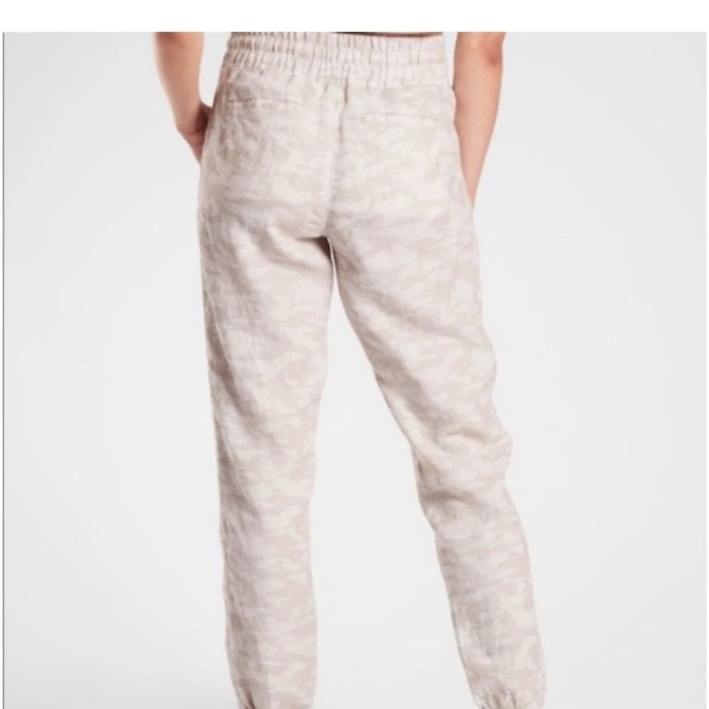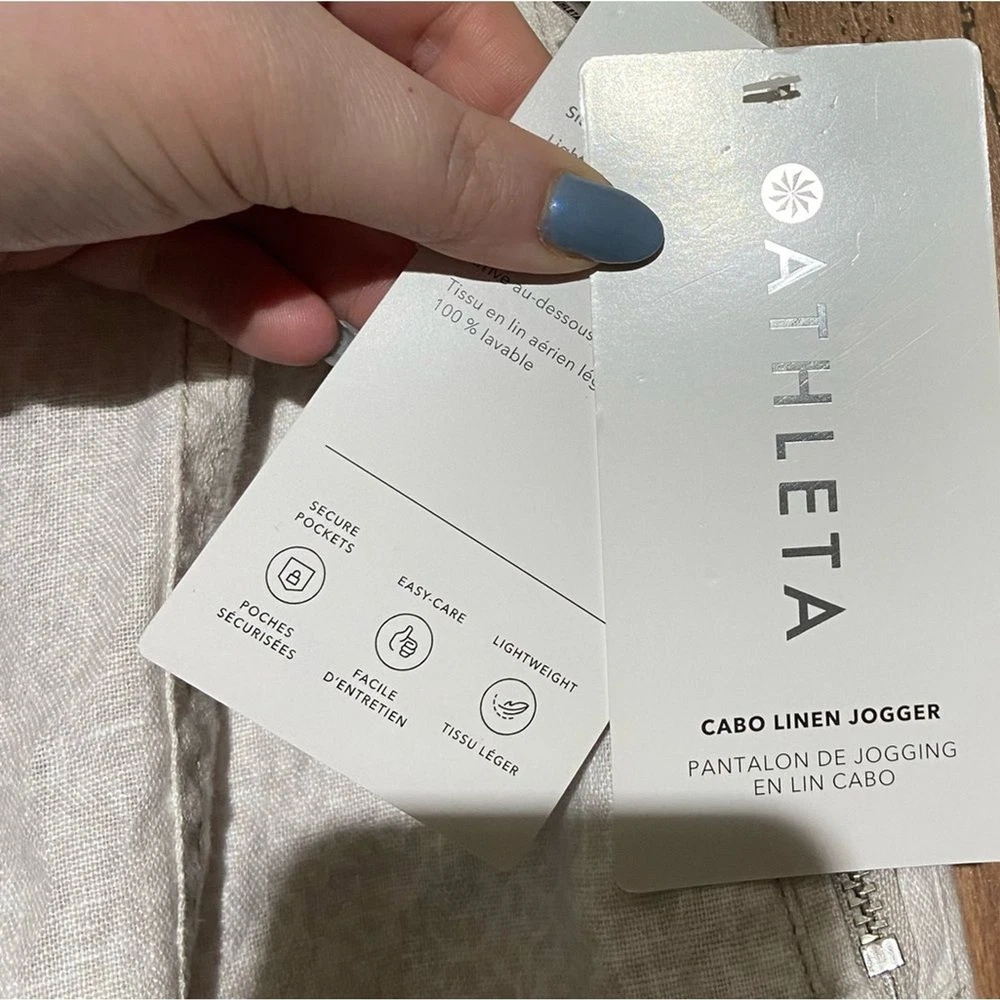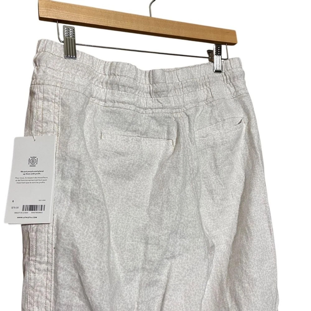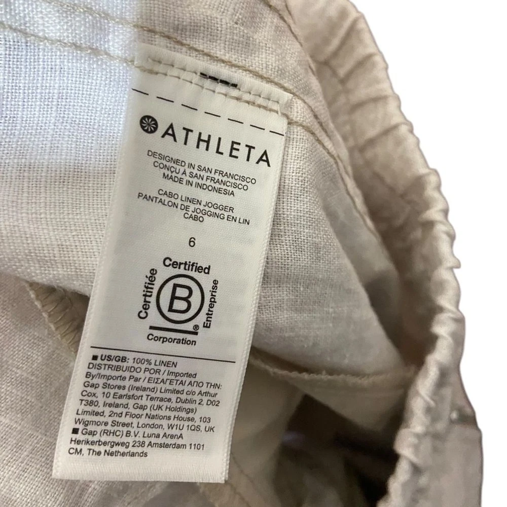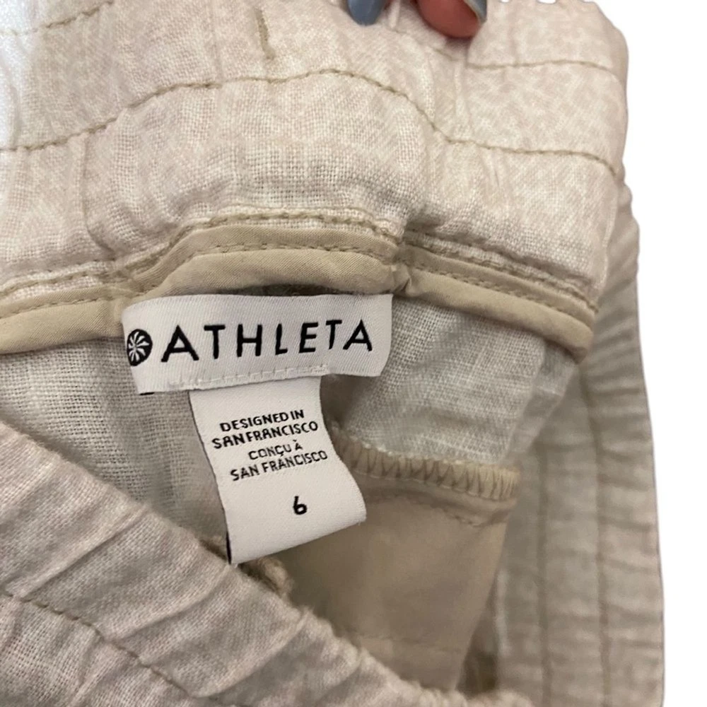 NWT Athleta Cabo Linen Jogger • Size: 6 ] • Material: Lightweight linen blend, perfect for warm weather • Style: Jogger pants • Elastic waistband with drawstring for an adjustable fit • Relaxed, tapered leg • Side pockets for convenience • Lightweight and breathable • Condition: New with tags (NWT) Ships within 2 business days. Refer to photos for approximate measurements and details.