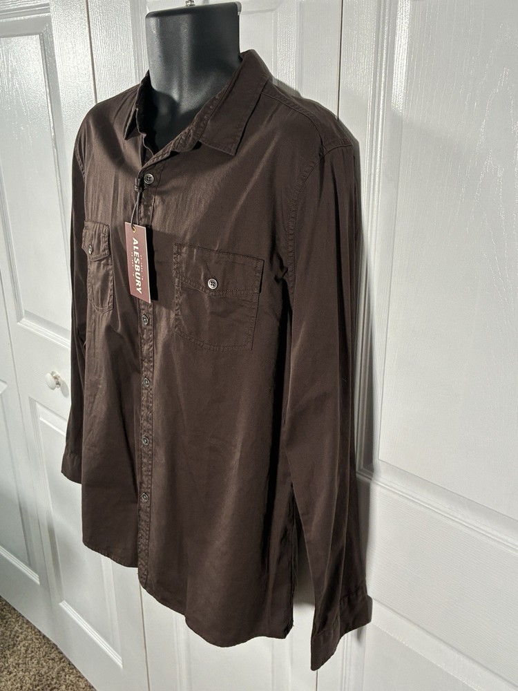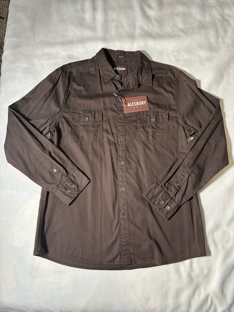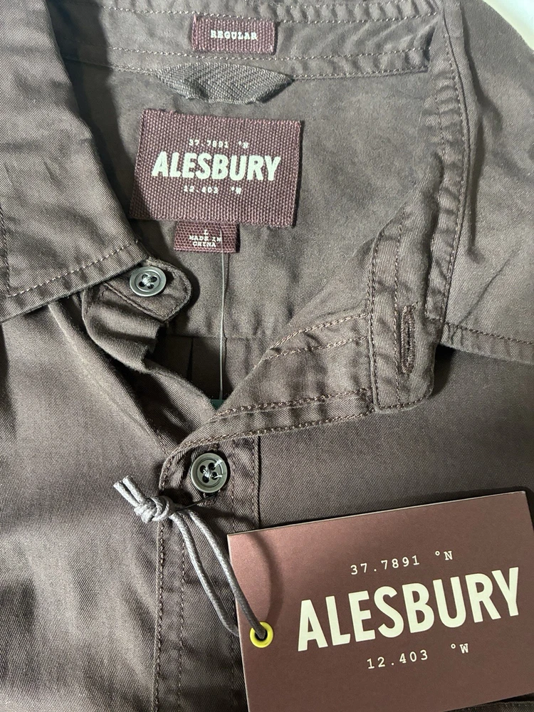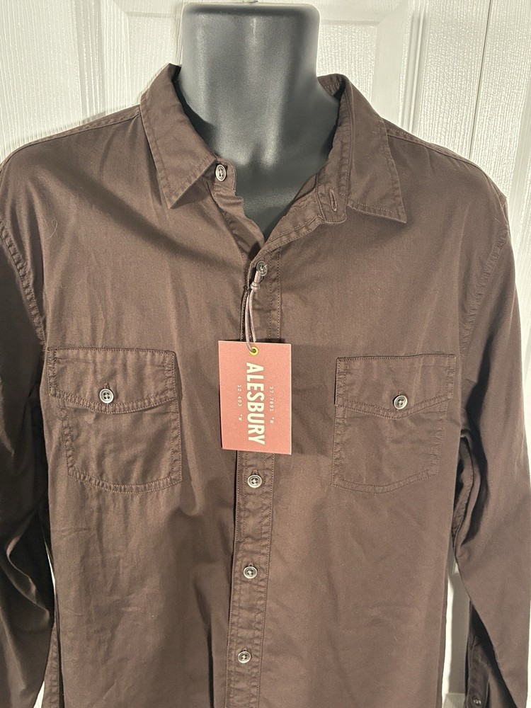 NWT Alesbury Jacket Brown Military Shirt Jacket Button Up Men’s Size Large Measurements in photos
