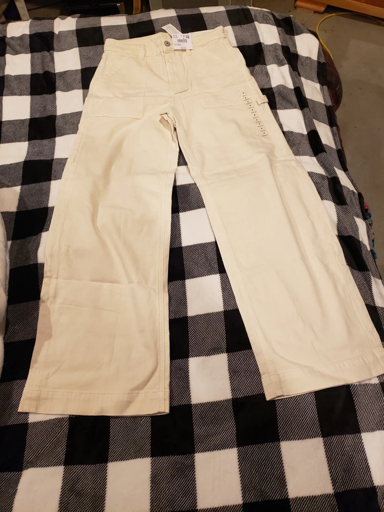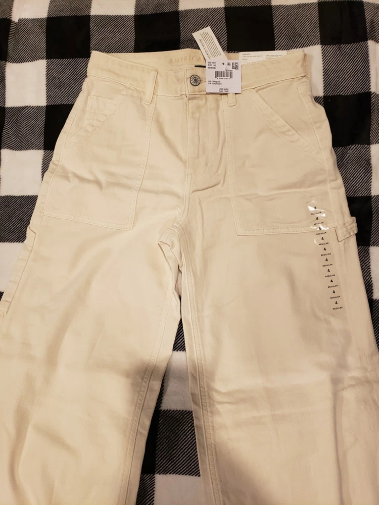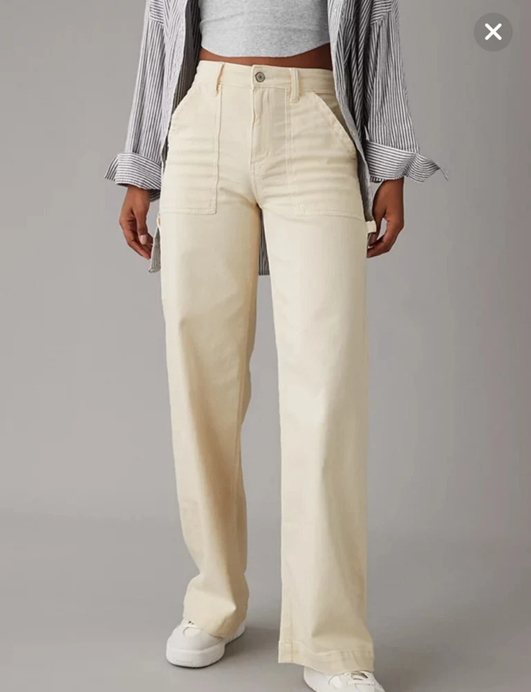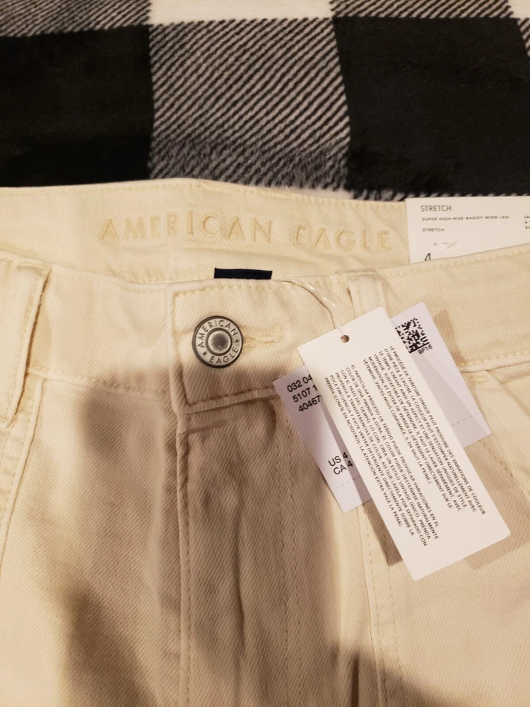 NWT American Eagle X Ziegler HIGH RISE BAGGY WIDE LEG Pants Sz 4 Khaki Stretch