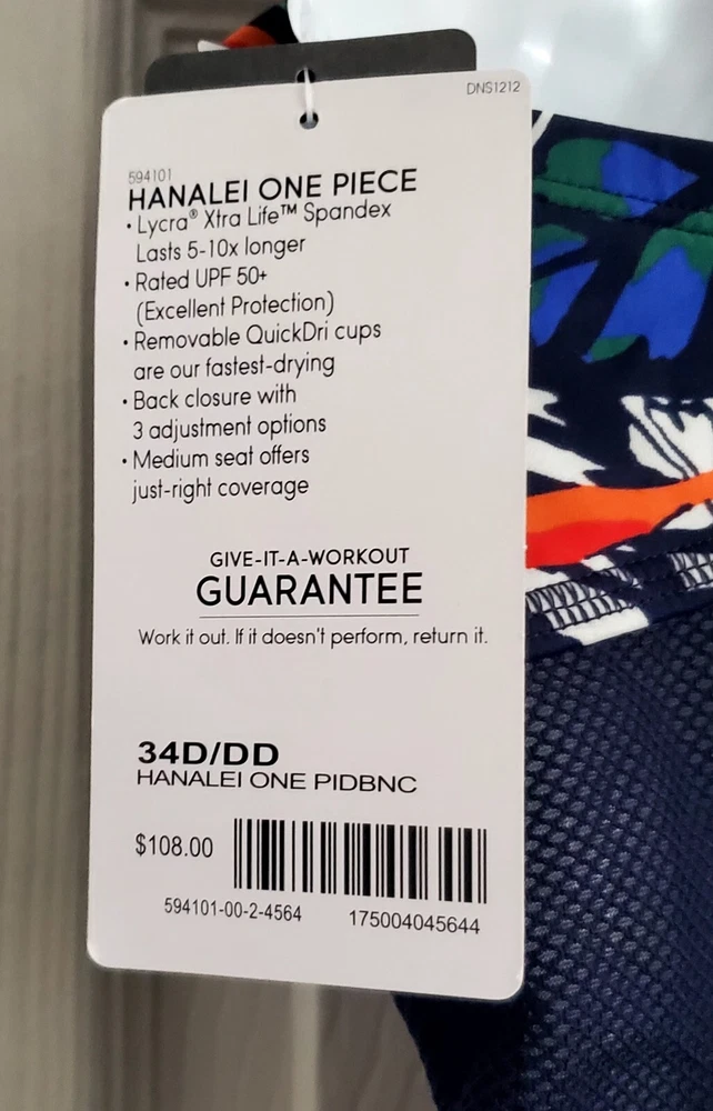 On offer is a one piece swimsuit by famous brand Athleta. Features include built in wired bra with removable cups that are quickdri, stretch lycra material, UPF 50+, back closure with 3 adjustment options. Size 34 D/DD cups. Retails for $108. PLEASE READ Thank you for supporting my small business by visiting my store and for your interest in this item. Feel free to look at my other varied eBay pieces for sale, you never know what may catch your eye. LISTED ITEMS: All items listed come from a non-smoking environment. Unless stated as new, most of my items are pre-owned so please be aware that they are not in perfect condition, are sold AS IS and are non-returnable. I try to describe the product listed as best I can, especially any flaws or defects that I am aware of, but please look at pictures carefully as it is part of my description and also you can have a better idea of its condition. Do message me for any questions you may have. Please be assured that any named branded products are as such and not fake, reproductions or imitations. BUYING: In my BEST OFFER listings, any fair and reasonable offer considered. If you make an offer, I will always respond whether I accept, counteroffer or decline but please understand there will be times when I may not respond right away. PAYMENT: Payment within 3 days of purchase date is greatly appreciated. If payment is not received by then, transaction will be cancelled. I only ask that if you change your mind about a sold item, I’d rather you ask to cancel the sale rather than leave me hanging, so I can re-list the item again. I will not leave negative feedback for you changing your mind. SHIPPING: Shipment of item(s) will be within 2-3 days. I do not set shipping costs, instead, EBAY automatically calculates it based on the buyer’s location, package weight and dimensions but I compare prices and go with a cheaper option if possible. Also, FYI, any item sold over $200, I will automatically include signature confirmation to shipping. If doable, I will combine shipping for multiple items bought. I only use eBay International Shipping for international shipping. Buyers are responsible for any customs and import taxes that may apply and please note of any delays due to customs. For Local Pickup Only, please have eBay -provided Local Pickup code ready (a QR code and a 6 digit code). ISSUES: I understand that in any business, problems may arise. Please, if you can help it, do not open a case. Message me and I will work quickly to try to resolve the problem as your satisfaction is important to me. FEEDBACK: Once you receive your item, if you are satisfied with your buying experience, I would appreciate it if you would leave a positive feedback, thank you. Thanks again for stopping by.