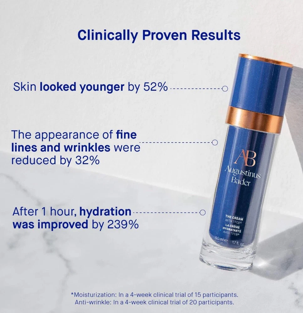 Augustinus Bader Authentic Sealed Fresh THE CREAM 1.7 Oz 2024 $300 Highlights: Good for: Loss of firmness Good for: Dark spots Best for Oily, Combo, Normal Skin Vitamin C Good for: Uneven Texture Good for: Anti-Aging About the Product: What it is: A light, hydrating moisturizer powered by patented TFC8® that’s clinically shown to reduce the appearance of fine lines, wrinkles, and hyperpigmentation. Skin Type: Normal, Dry, Combination, and Oily Skincare Concerns: Dark Spots, Fine Lines and Wrinkles, and Loss of Firmness and Elasticity Highlighted Ingredients: - TFC8®: Nourishes and protects skin, supporting cellular renewal. - Vitamin A (Retinyl Palmitate): Supports improved skin-barrier function and moisture retention. - Vitamin C (Ascorbic Acid): A potent antioxidant that visibly brightens skin and supports collagen production. Ingredient Callouts: Free of parabens, formaldehydes, formaldehyde-releasing agents, phthalates, mineral oil, oxybenzone, coal tar, hydroquinone, sulfates SLS & SLES, triclocarban, triclosan, and contains less than one percent synthetic fragrance. It is also cruelty-free. What Else You Need to Know: Inspired by 30 years of research, this lightweight yet hydrating cream replenishes skin’s moisture and visibly transforms your complexion. Infused with TFC8®—a patented blend of amino acids, vitamins, and synthesized molecules—the fragrance-free formula delivers key nutrients to encourage more even-, firm-, and toned-looking skin. Clinical Results: In a 28-day user trial with 90 participants: - 94% agreed that dull skin appeared brighter - 87% agreed that skin looked regenerated - 83% agreed that skin felt quickly and deeply hydrated