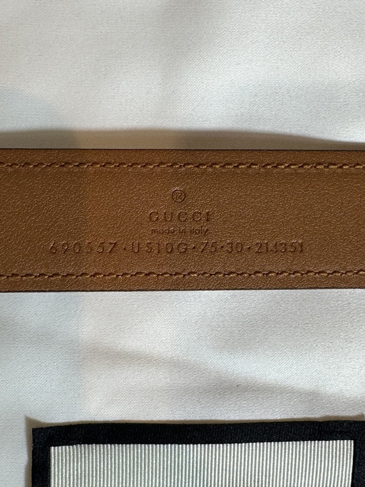 New with tags Authentic Gucci Brown Leather Belt with Interlocking GG Buckle *small scratches on the buckle: please see the second photo for details* Size: 75 cm / 30 inch Width: 1.2 inches Color: Brown Material: Smooth calfskin leather Buckle: Gold-tone interlocking GG Made in Italy Condition: Authentic, new with tags Includes: dustbag