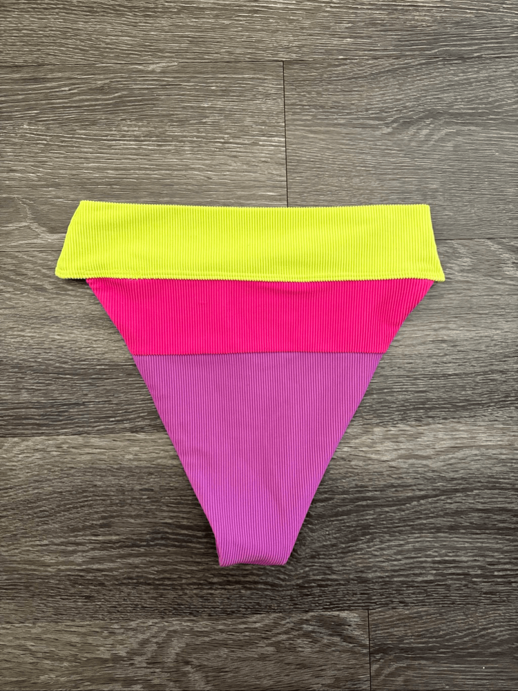 NWT Beach Riot Alexis High Leg Bikini Bottom Multicolor Colorblock Size Small New with tags $78 MSRP Size small Flat lay waist is about 11.25” before stretch Please ask all questions before purchase