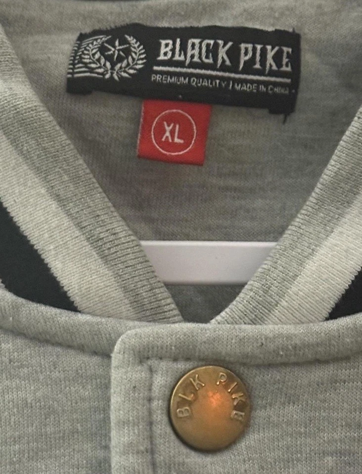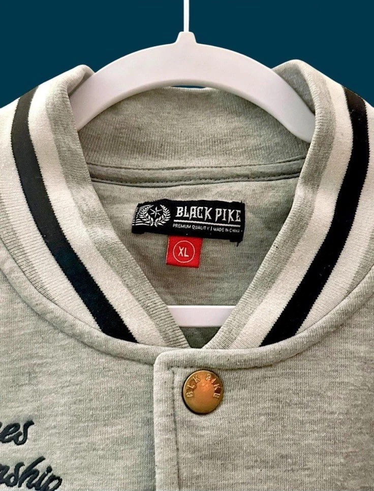 Occasion: Business, Casual, Party/Cocktail, Travel Type: Jacket Garment Care: Machine Washable Vintage: Yes Department: Men Closure: Snap Style: Varsity Jacket Season: Fall, Spring, Summer, Winter Fit: Classic Size Type: Regular Outer Shell Material: Cotton Blend Color: Gray Brand: BLACK PIKE Handmade: No Performance/Activity: Rugby, Skateboarding, Soccer, Track & Field, Volleyball, Walking Jacket/Coat Length: Mid-Length Collar Style: Band Features: Pockets Size: XL Pattern: Striped