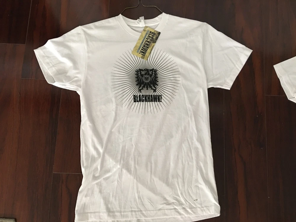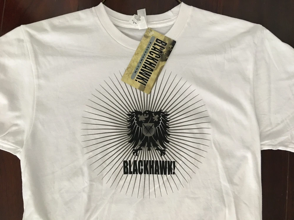 Item: Men's Graphic T Shirt Size: Small Underarm to underarm: 19 inches Brand: Blackhawk! Color: White and Black Condition: New with tags Description: This shirt is new with tags from Blackhawk. It's the Men's BH Crest! T Shirt with logo on the front and back. Note About Condition Descriptions: Excellent: No flaws, like new. Very Good: No flaws - very little wear. Good: May have some flaws, but will be noted in item description. If item description is just good - there is nothing wrong with the item, but it may have some wash wear or you can tell that it has been worn some. Play Condition: Has flaws and will be noted in item description. This outfit comes from a smoke and pet free home! Please message me with any questions. CHECK OUT MY OTHER GREAT DEALS IN MENS CLOTHES & CLEARANCE CLOTHES! Ozwald’s Gaming & Hobby Zone! “Your one stop shop for all your video gaming, DVD, digital and hobby needs!" · PayPal verified! · Ships within 24-48 hours of payment! · Check out our positive feedback! IF THERE ARE ANY PROBLEMS WITH A PURCHASE PLEASE CONTACT US BEFORE LEAVING FEEDBACK OR CONTACTING EBAY. IT IS OUR DUTY TO MAKE YOU OUR CUSTOMER HAPPY! All products are tested and proven to work prior to being placed on auction. Video games do NOT include instructional booklet unless it is stated in the product description or shown in the item picture. What is shown in the picture is what you will receive upon delivery. Multiple auctions are going on right now and new items are added every week so make sure to check back frequently! A variety of items will be listed including video games for all types of systems, books, movies, vintage toys, sports cards, and anything of that nature. Questions are always welcome and we will be happy to provide a quick and prompt response! Our feedback is proof that we mean business! We are here to impress and satisfy our customers! Our goal is to give you the best quality product, provide the quickest shipping rate, and interact in a professional manner. Thank you for stopping by and we look forward to doing business with you! Because if you're not happy we're not happy! Ozwald’s Gaming & Hobby Zone! “Your one stop shop for all your video gaming, DVD, digital and hobby needs!" · PayPal verified! · Ships within 24-48 hours of payment! · Check out our positive feedback! IF THERE ARE ANY PROBLEMS WITH A PURCHASE PLEASE CONTACT US BEFORE LEAVING FEEDBACK OR CONTACTING EBAY. IT IS OUR DUTY TO MAKE YOU OUR CUSTOMER HAPPY! All products are tested and proven to work prior to being placed on auction. Video games do NOT include instructional booklet unless it is stated in the product description or shown in the item picture. What is shown in the picture is what you will receive upon delivery. Multiple auctions are going on right now and new items are added every week so make sure to check back frequently! A variety of items will be listed including video games for all types of systems, books, movies, vintage toys, sports cards, and anything of that nature. Questions are always welcome and we will be happy to provide a quick and prompt response! Our feedback is proof that we mean business! We are here to impress and satisfy our customers! Our goal is to give you the best quality product, provide the quickest shipping rate, and interact in a professional manner. Thank you for stopping by and we look forward to doing business with you! Because if you're not happy we're not happy! View more great items
