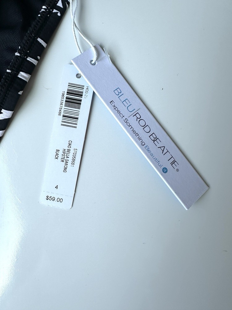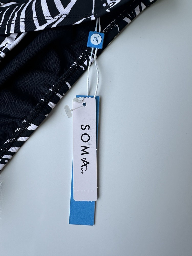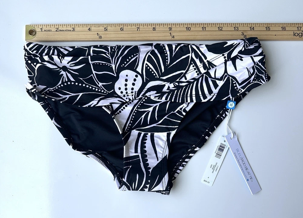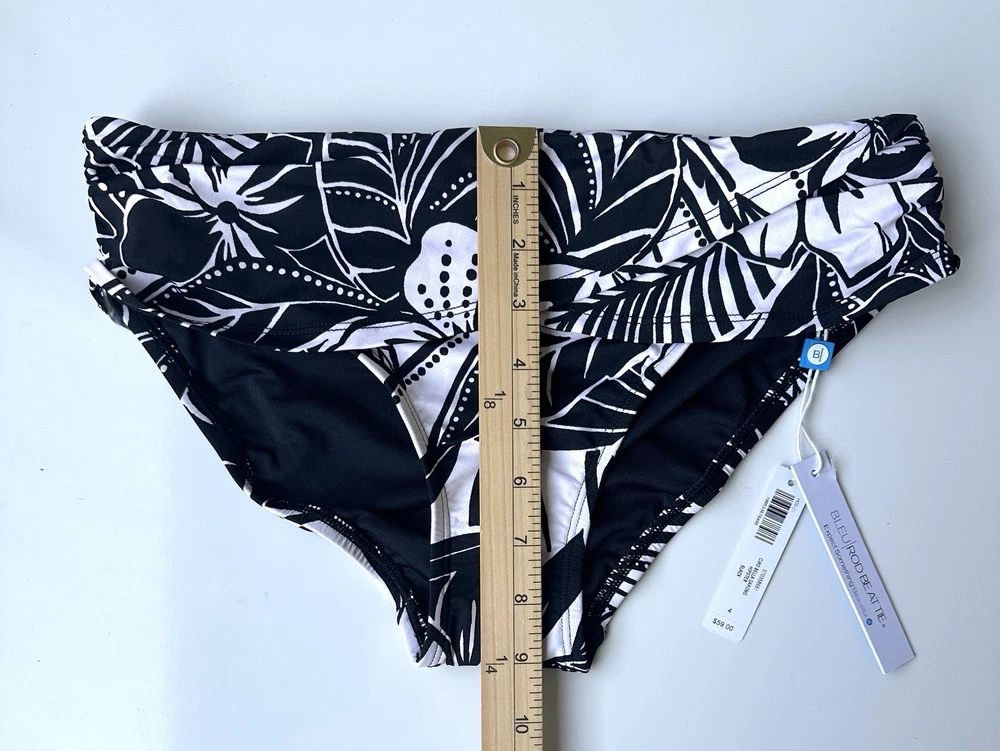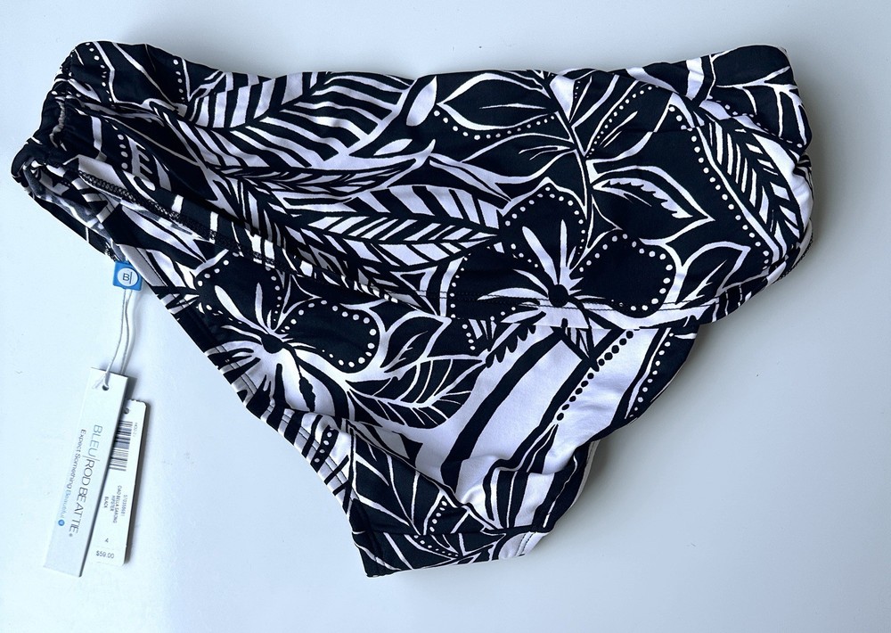 NWT Bleu Rod Beattie Soma Black White Ciao Bella Sarong Hipster Bottom Women’s 4 BOTTOM ONLY “Classic swim bottoms and sarong accents come together to create this figure-flattering sarong hipster. We've got you covered for the season—mix and match these bottoms with our selection of versatile solid and patterned swim tops to create a variety of swimwear sets. Details Swim bottoms Sarong-inspired waist detail Brief coverage Nylon/spandex Hand wash only, cold.“ See photos for approximate measurements New with tags MSRP $59 Ships from a clean and smoke free home!